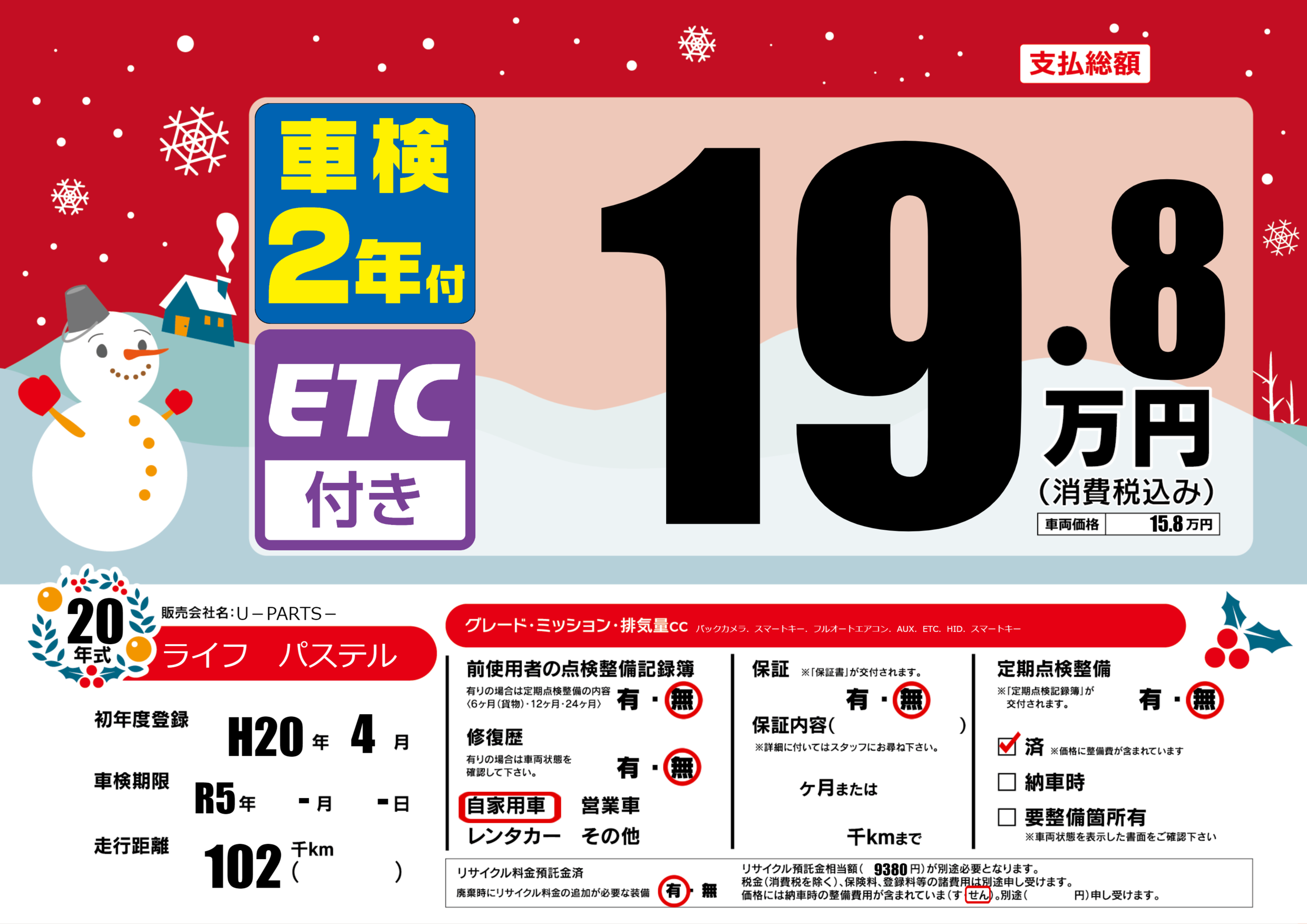 | 定期点検整備 | 定期点検整備なし 定期点検整備済み | ||