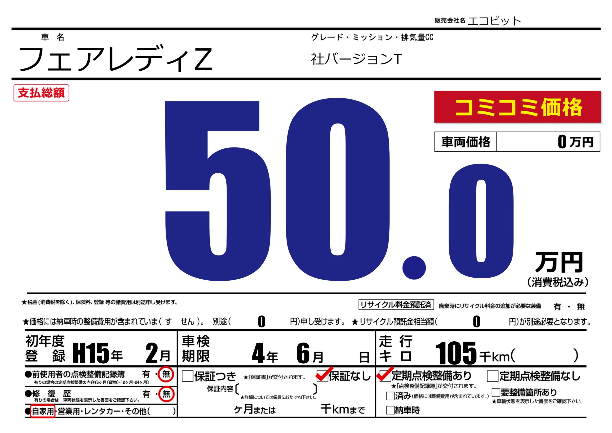 | 定期点検整備 | 定期点検整備あり | ||