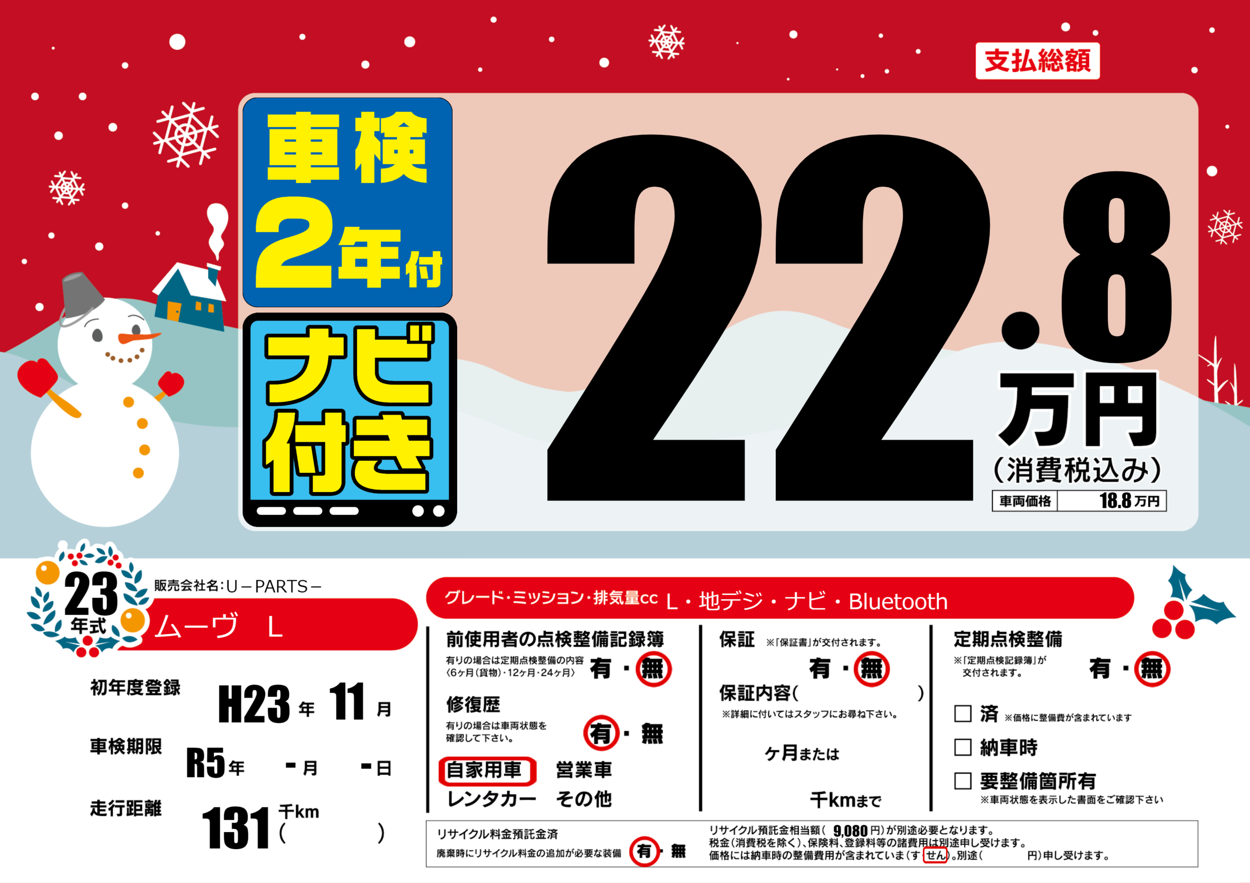 なし | 車検制限 | R5年-月-月 |