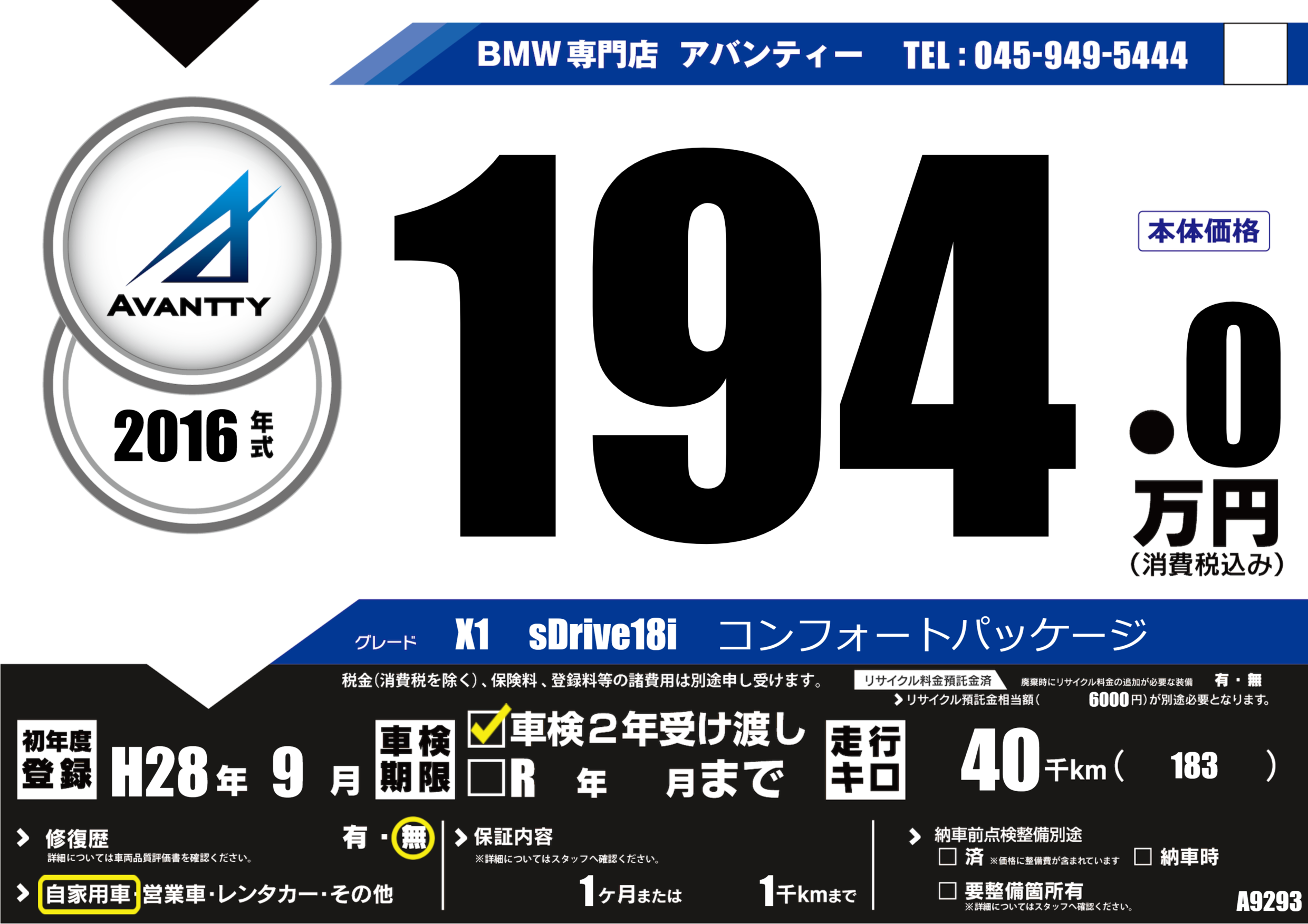 初年度登録 H28年9月