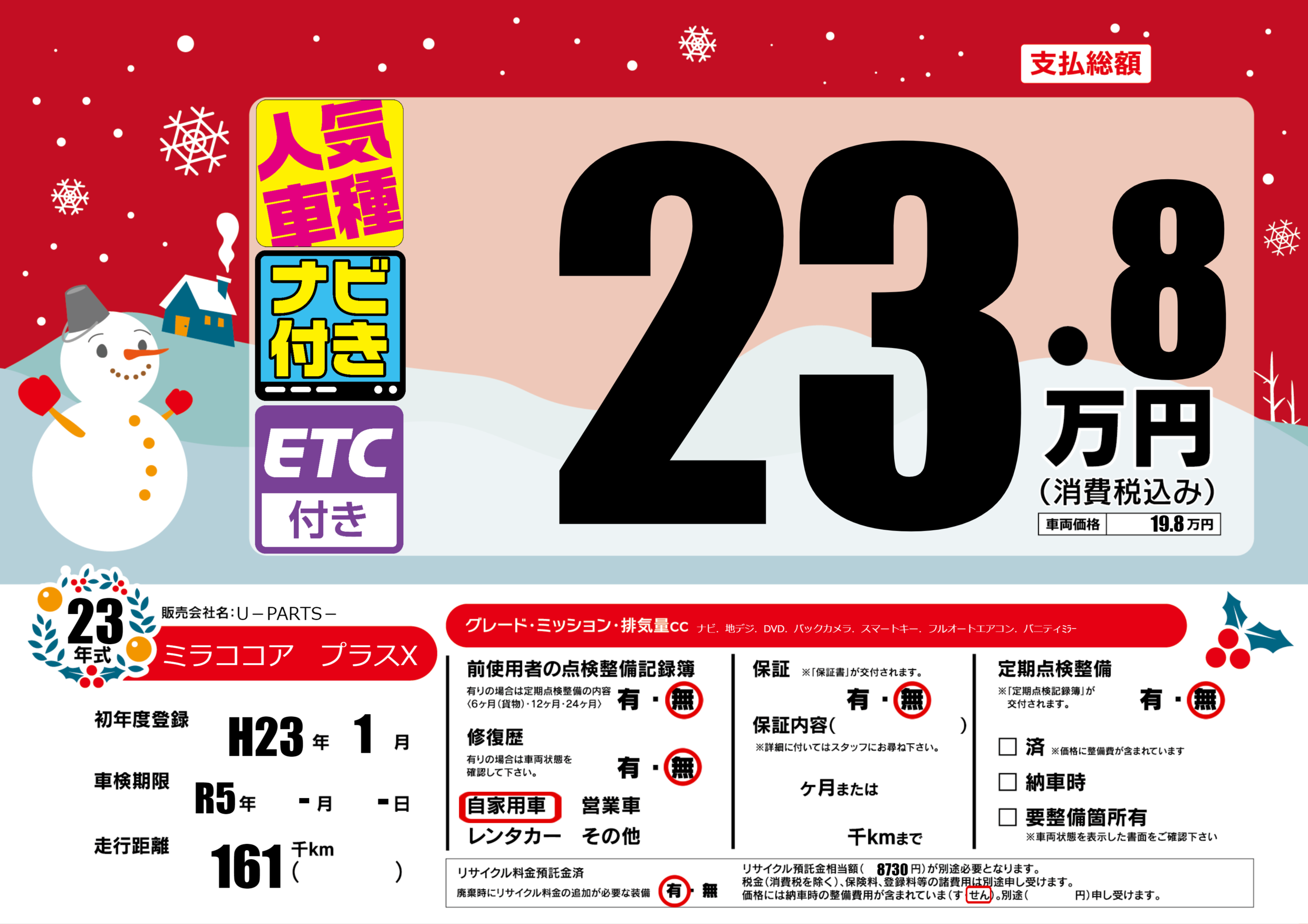 | 走行キロ | 16.1万km | 初年度登録 | H23年1月 |