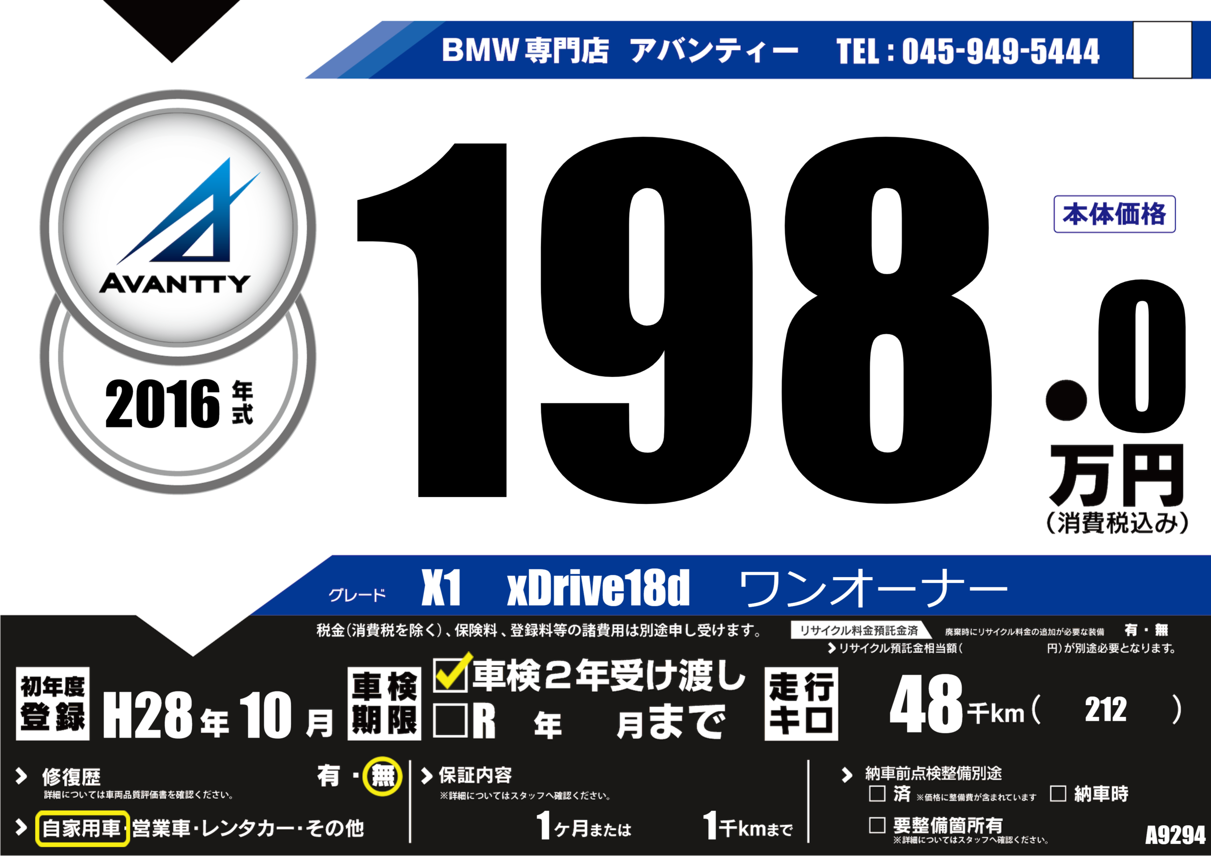 | 走行キロ | 4.8万km | 初年度登録 | H28年10月 |