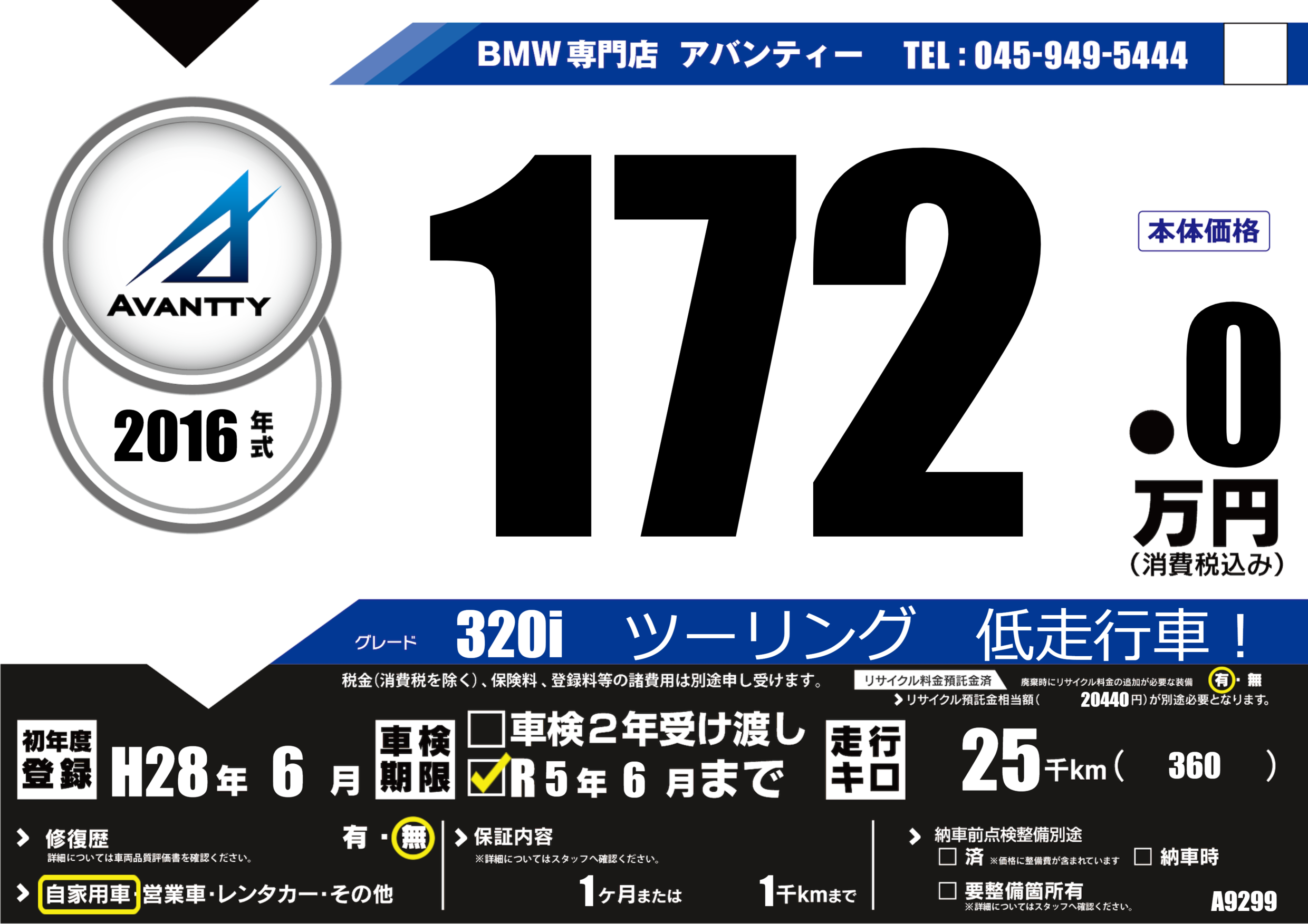 | 走行キロ | 2.5万km | 初年度登録 | H28年6月 |