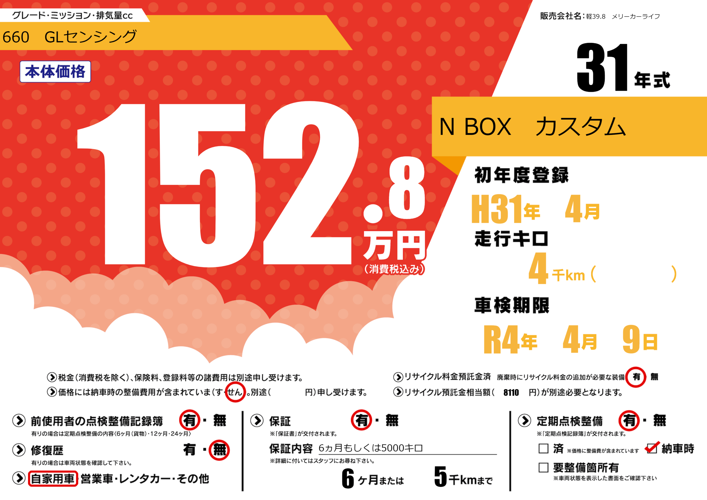 なし | 車検制限 | R4年4月9月 |