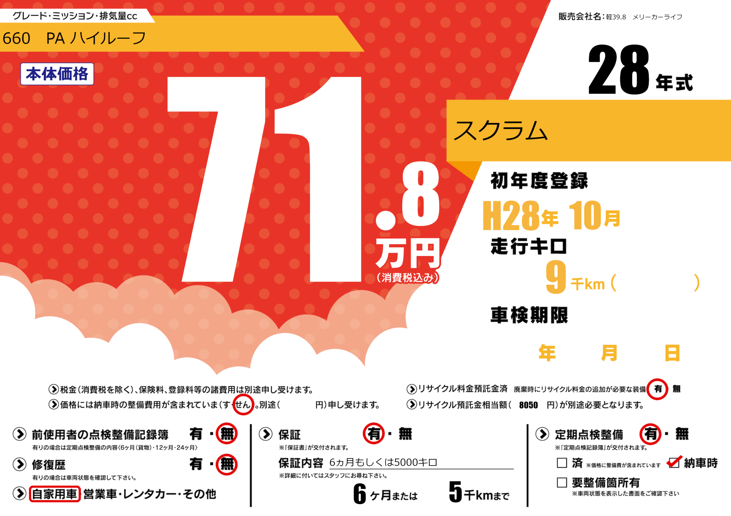 | 車名 | スクラム | グレード ミッション 排気量 |