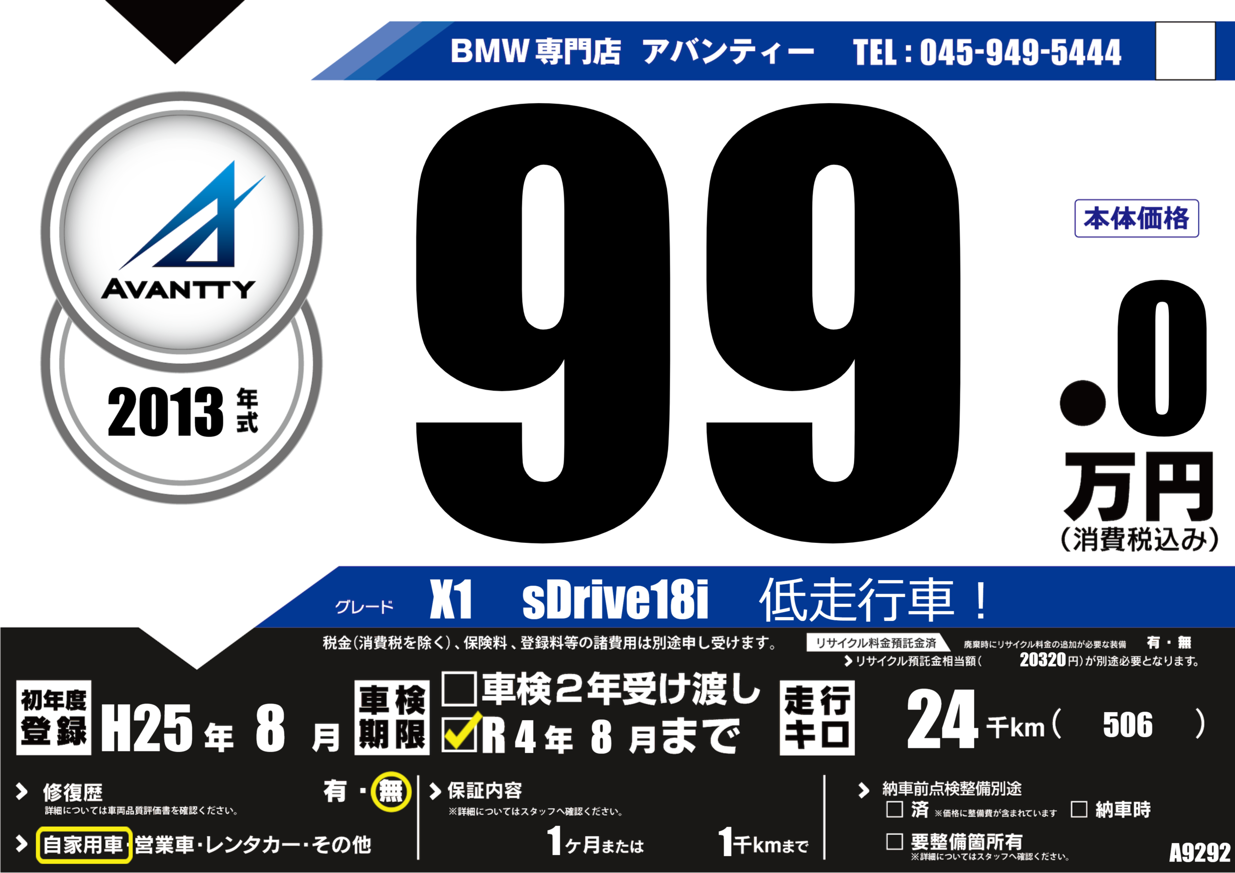 | 走行キロ | 2.4万km | 初年度登録 | H25年8月 |