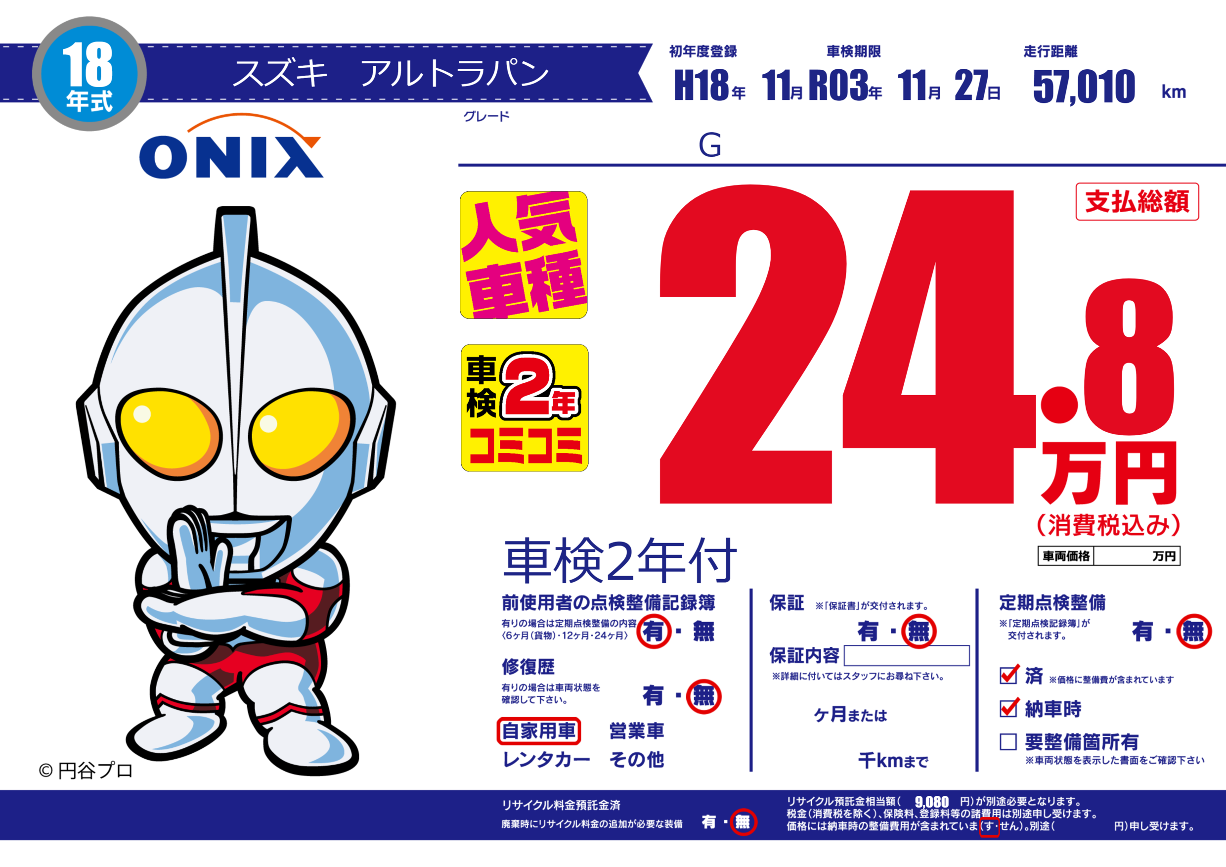 | 走行キロ | 5.7万km | 初年度登録 | H18年11月 |
