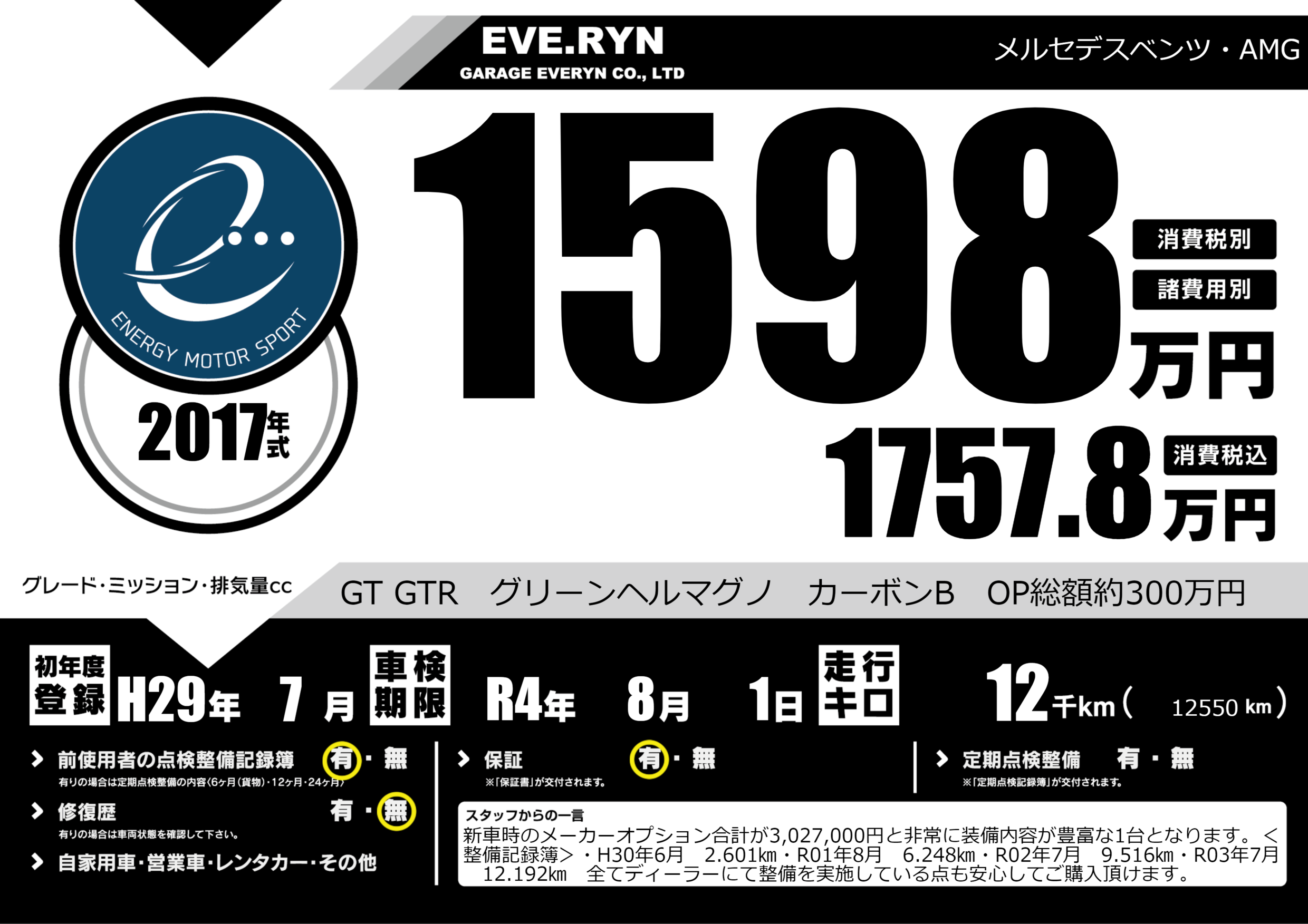 GT GTR グリーンヘルマグノ カーボンB OP総額約300万円 |