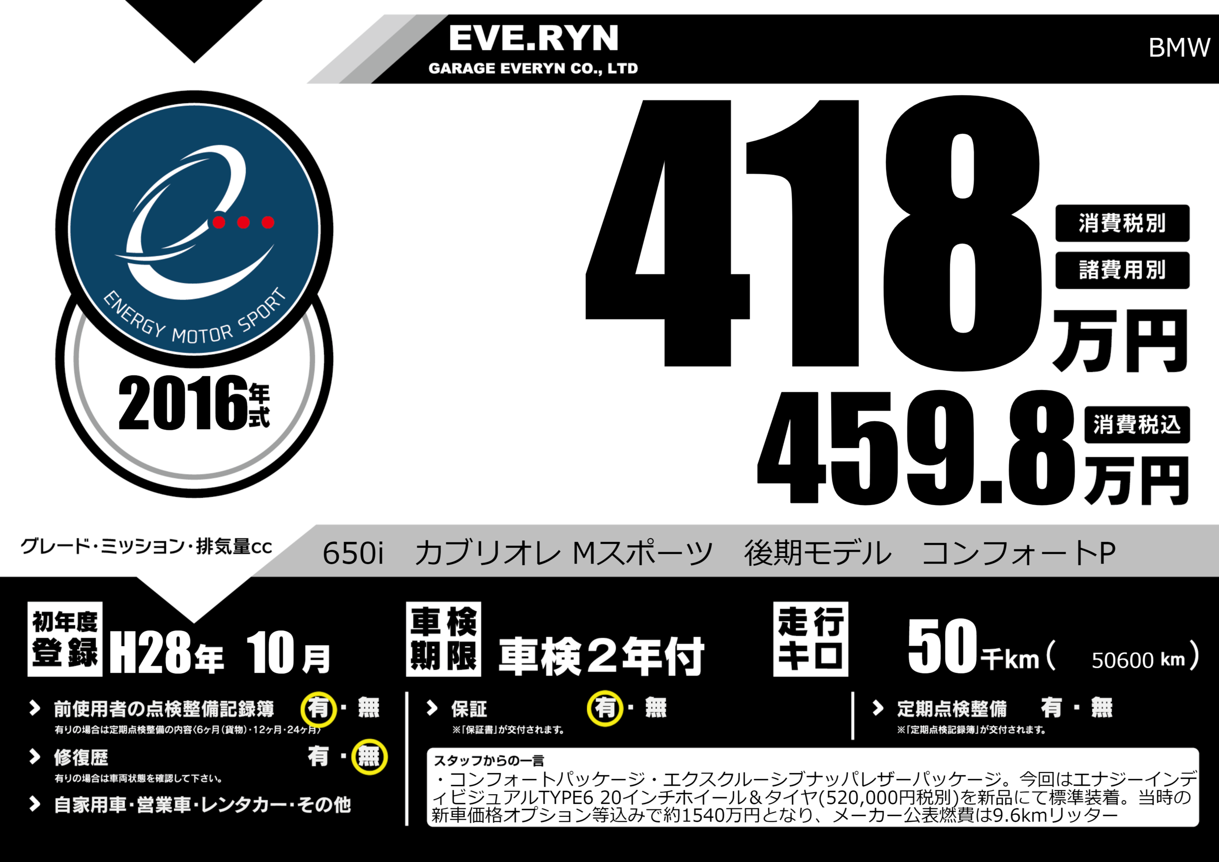 650i カブリオレ Mスポーツ 後期モデル コンフォートP |
