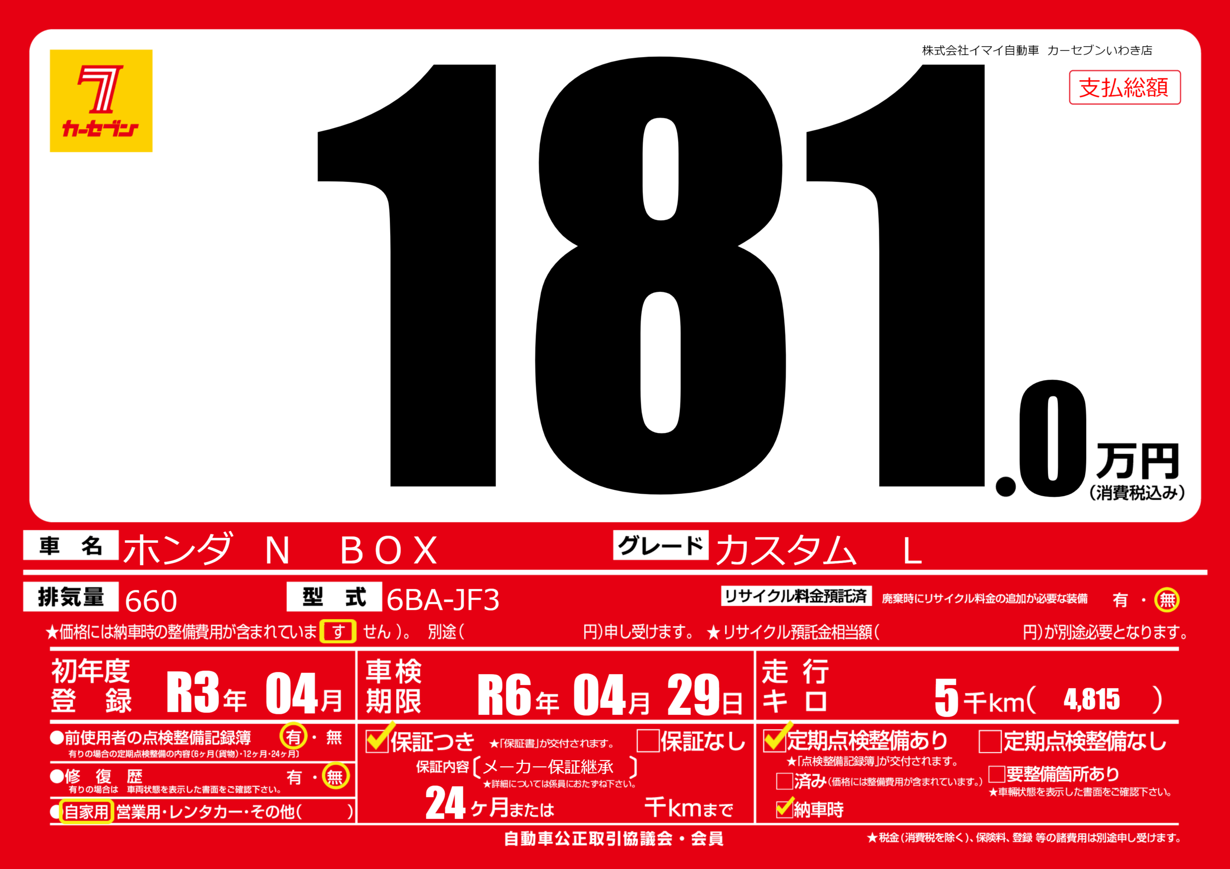 保証付き 保証内容(メーカー保証継承) 24ヶ月または()千kmまで |