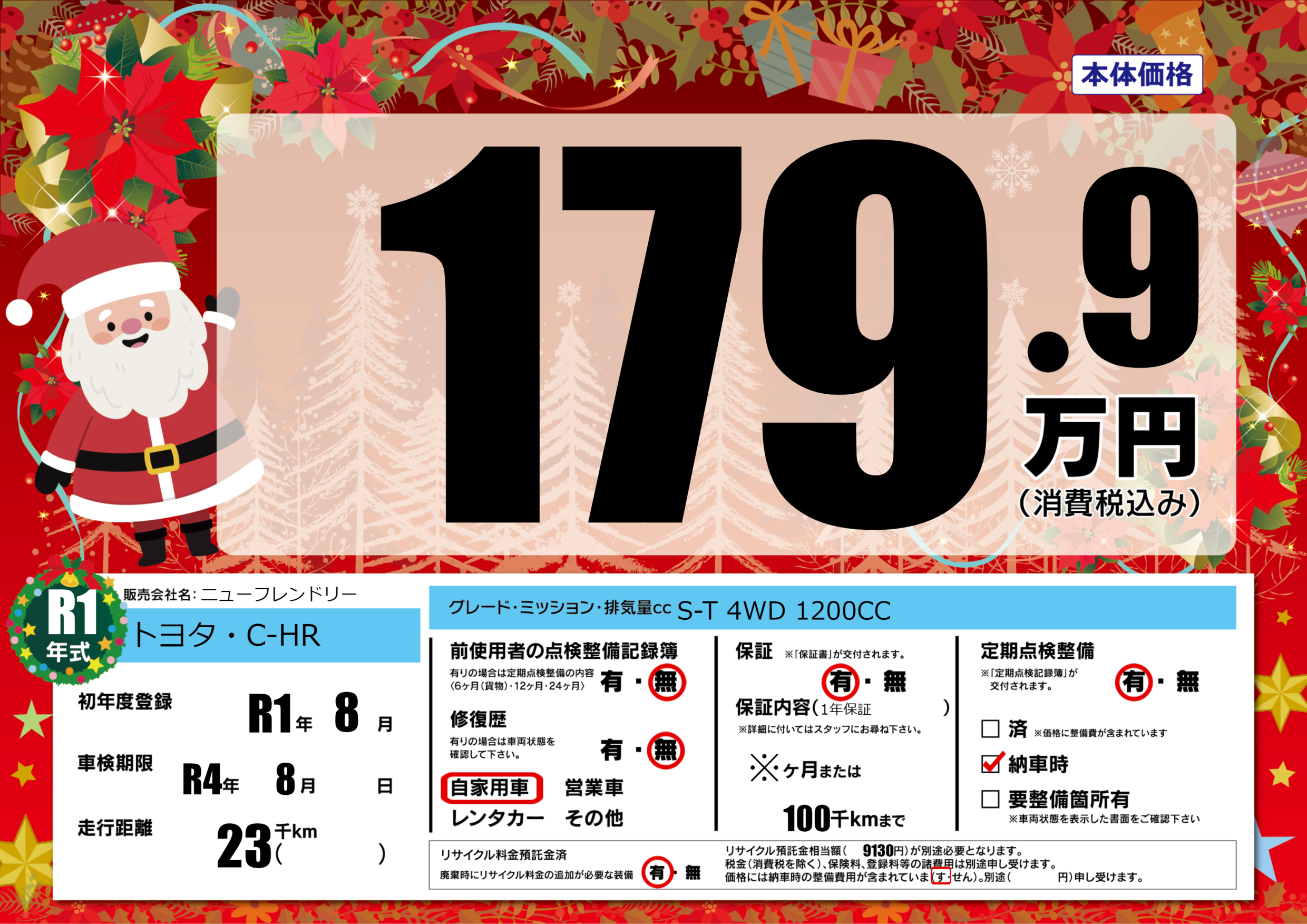 | 定期点検整備 | 定期点検整備あり 納車時あり | ||