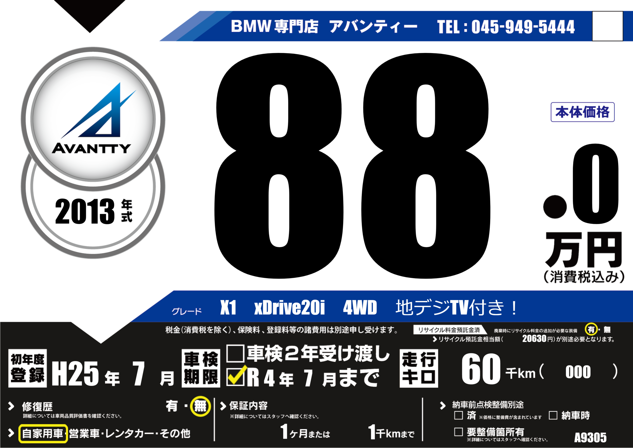 | 走行キロ | 6万km | 初年度登録 | H25年7月 |
