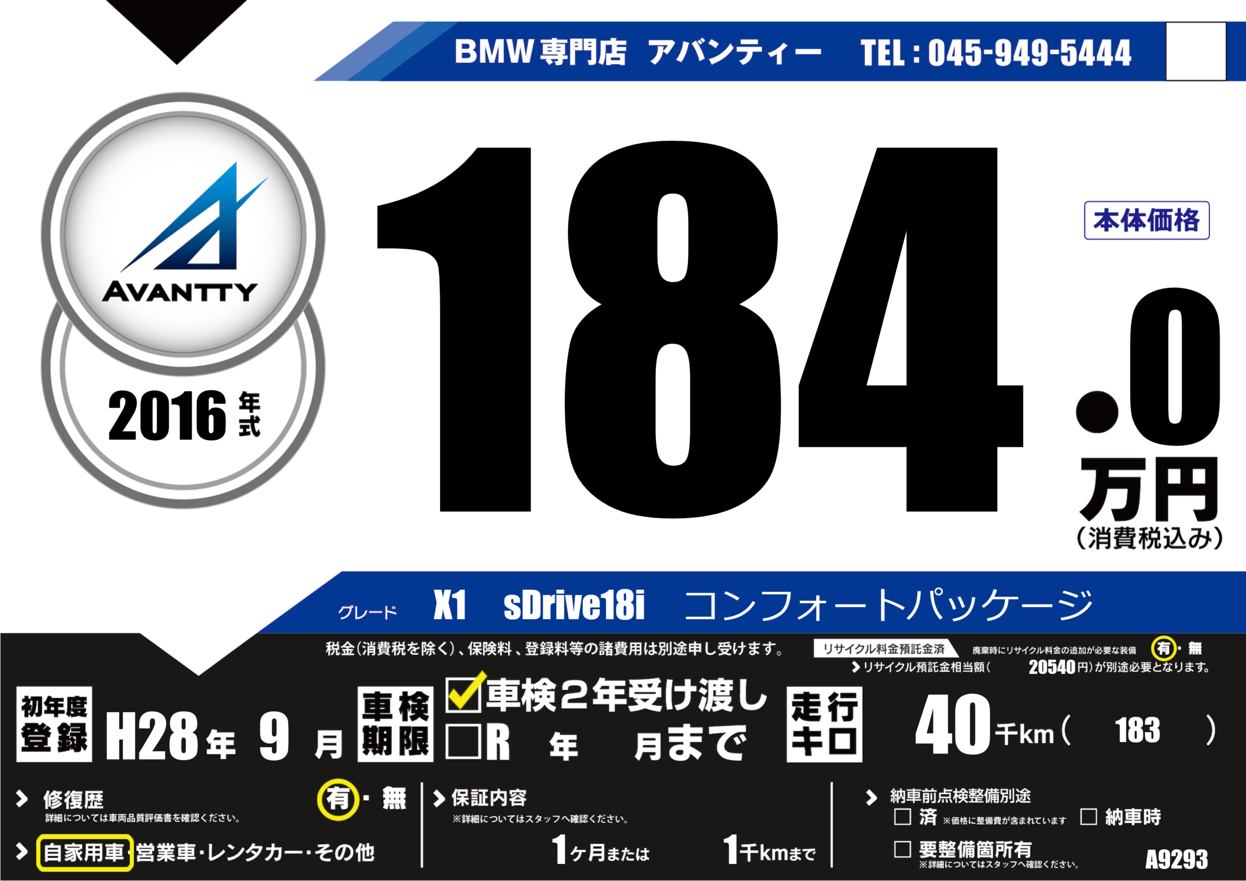 | 走行キロ | 4万km | 初年度登録 | H28年9月 |
