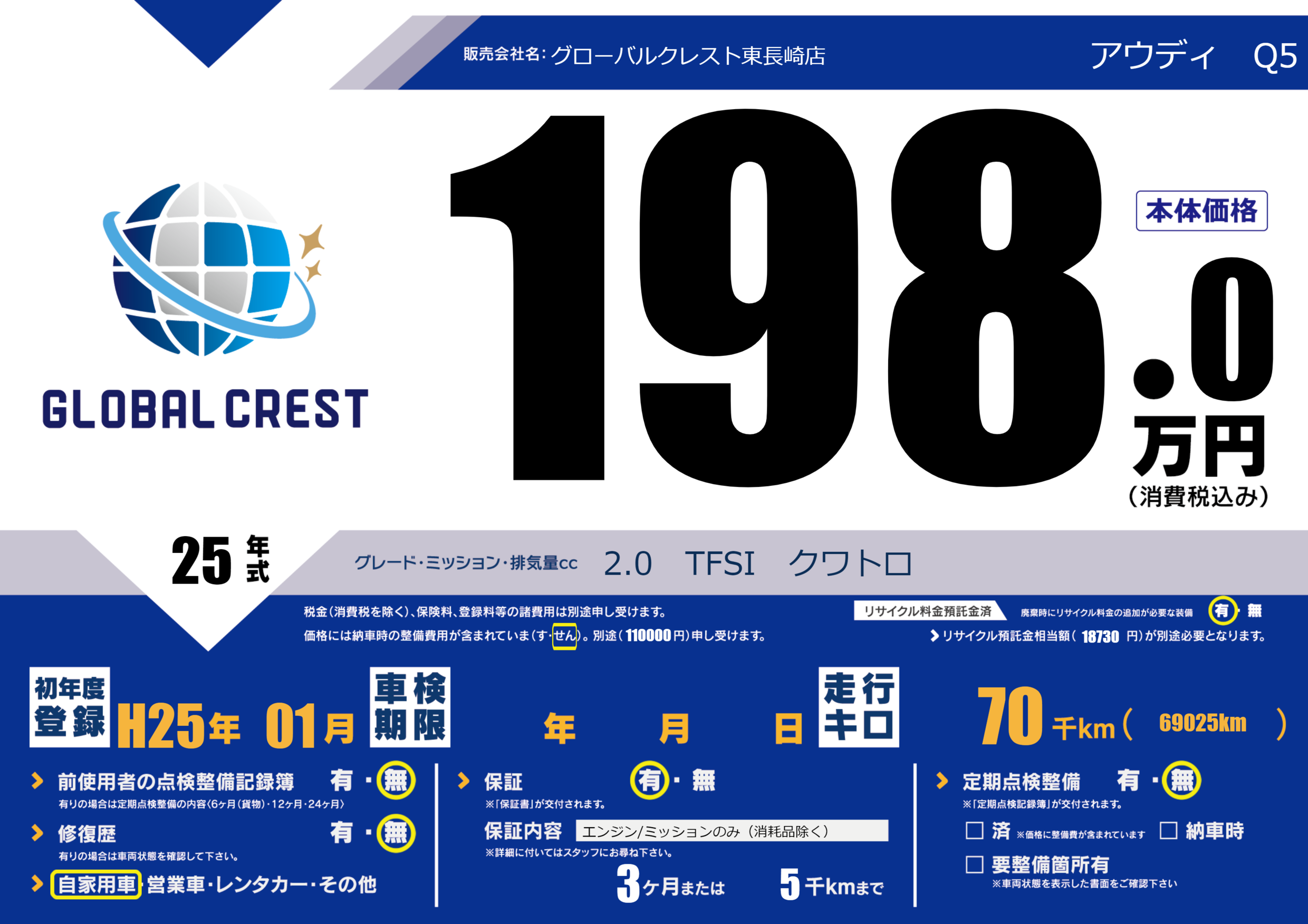 | 車名 | アウディ Q5 | グレード ミッション 排気量 |