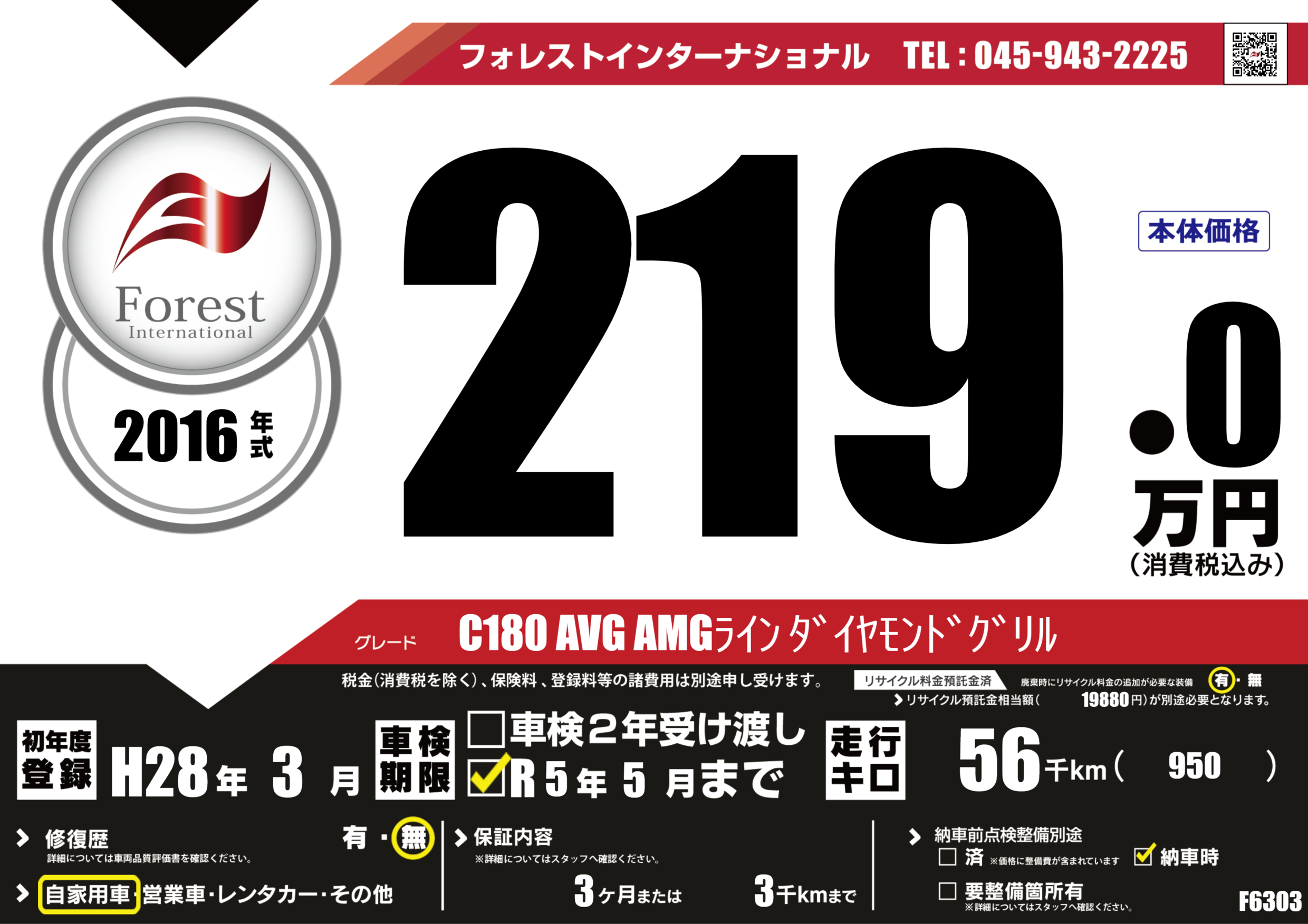 | 走行キロ | 5.6万km | 初年度登録 | H28年3月 |