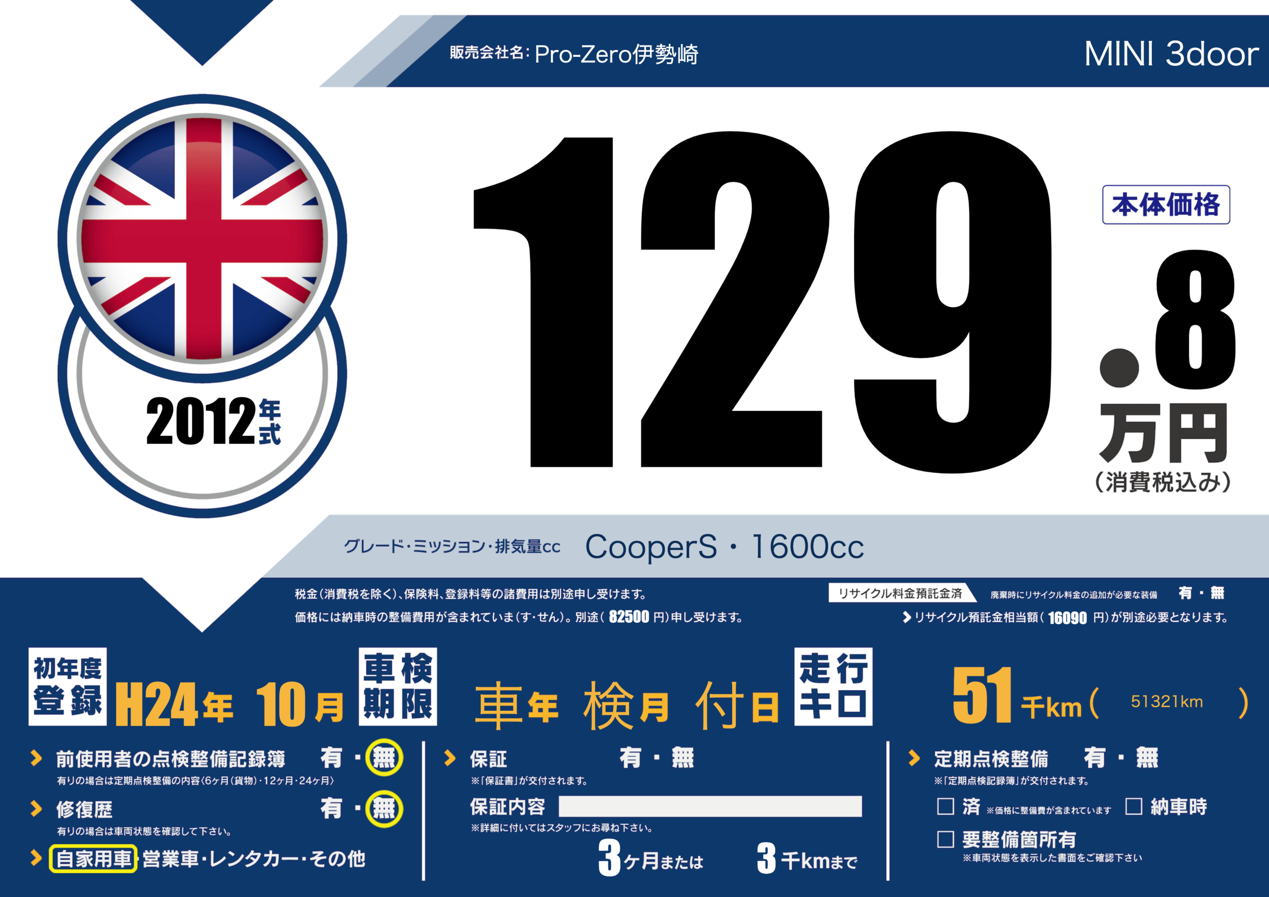 保証内容() 3ヶ月または3千km