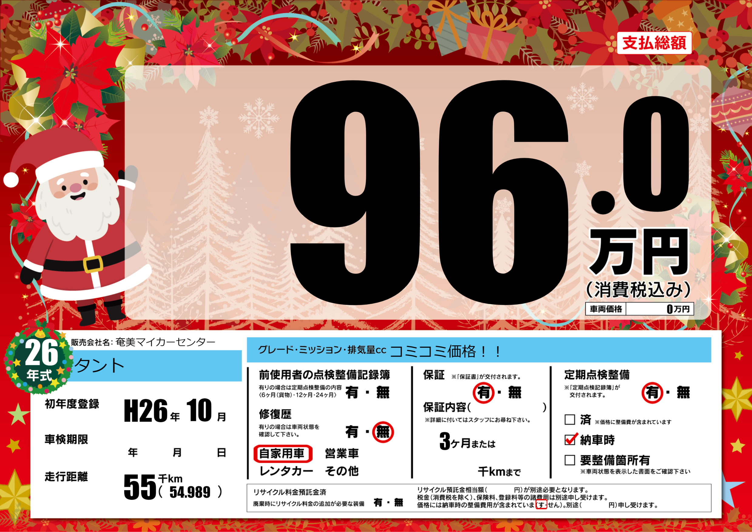 | 定期点検整備 | 定期点検整備あり 納車時あり | ||