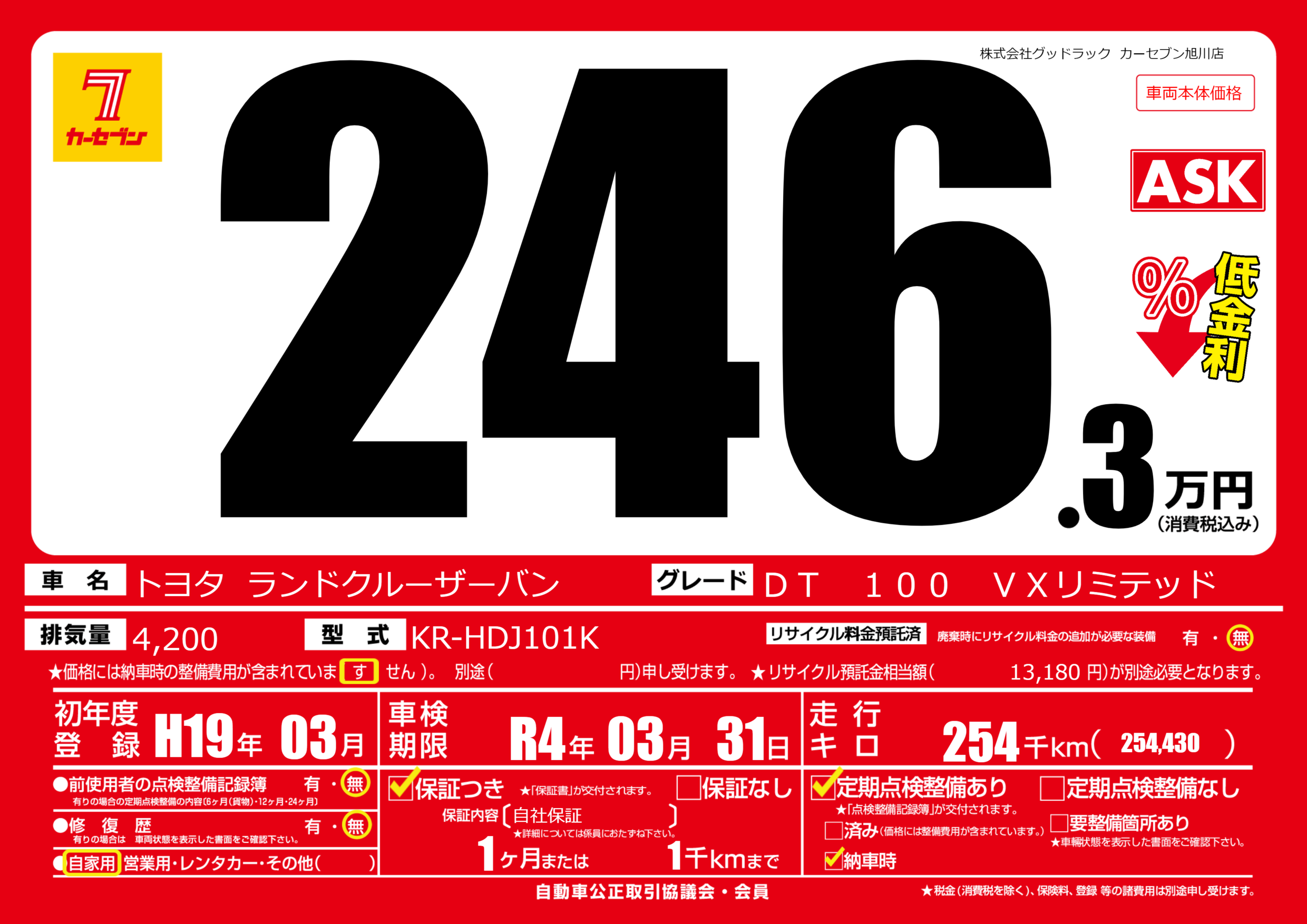 | 走行キロ | 25.4万km | ||