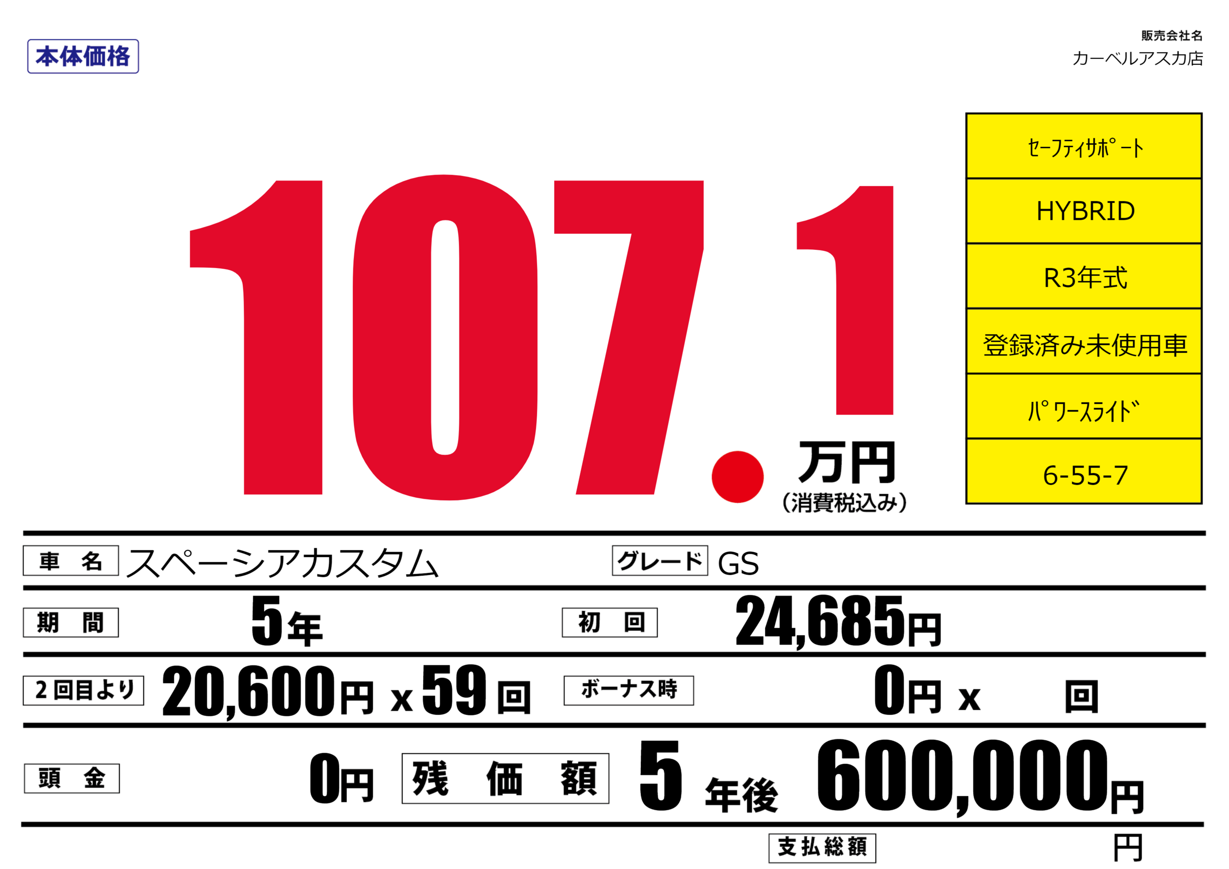 | 車名 | スペーシアカスタム | グレード ミッション 排気量 |