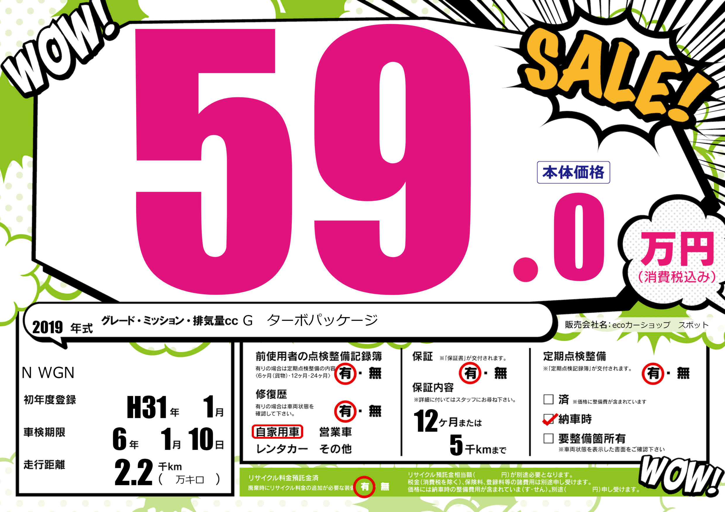| 車名 | N WGN | グレード ミッション 排気量 |