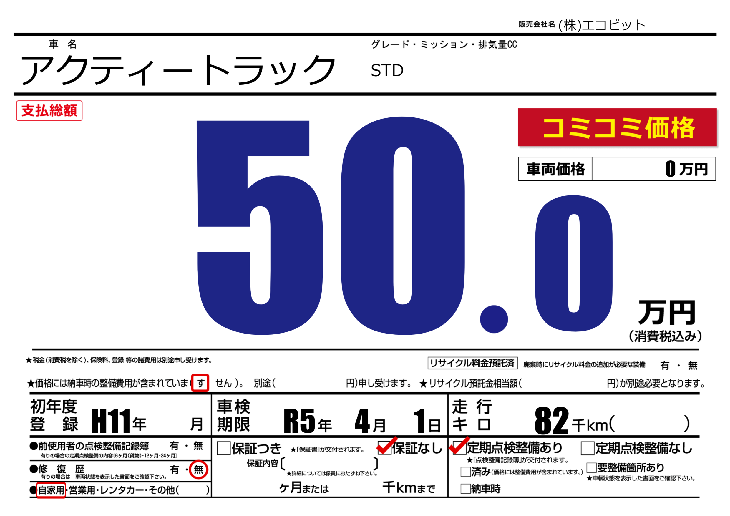 | 定期点検整備 | 定期点検整備あり | ||