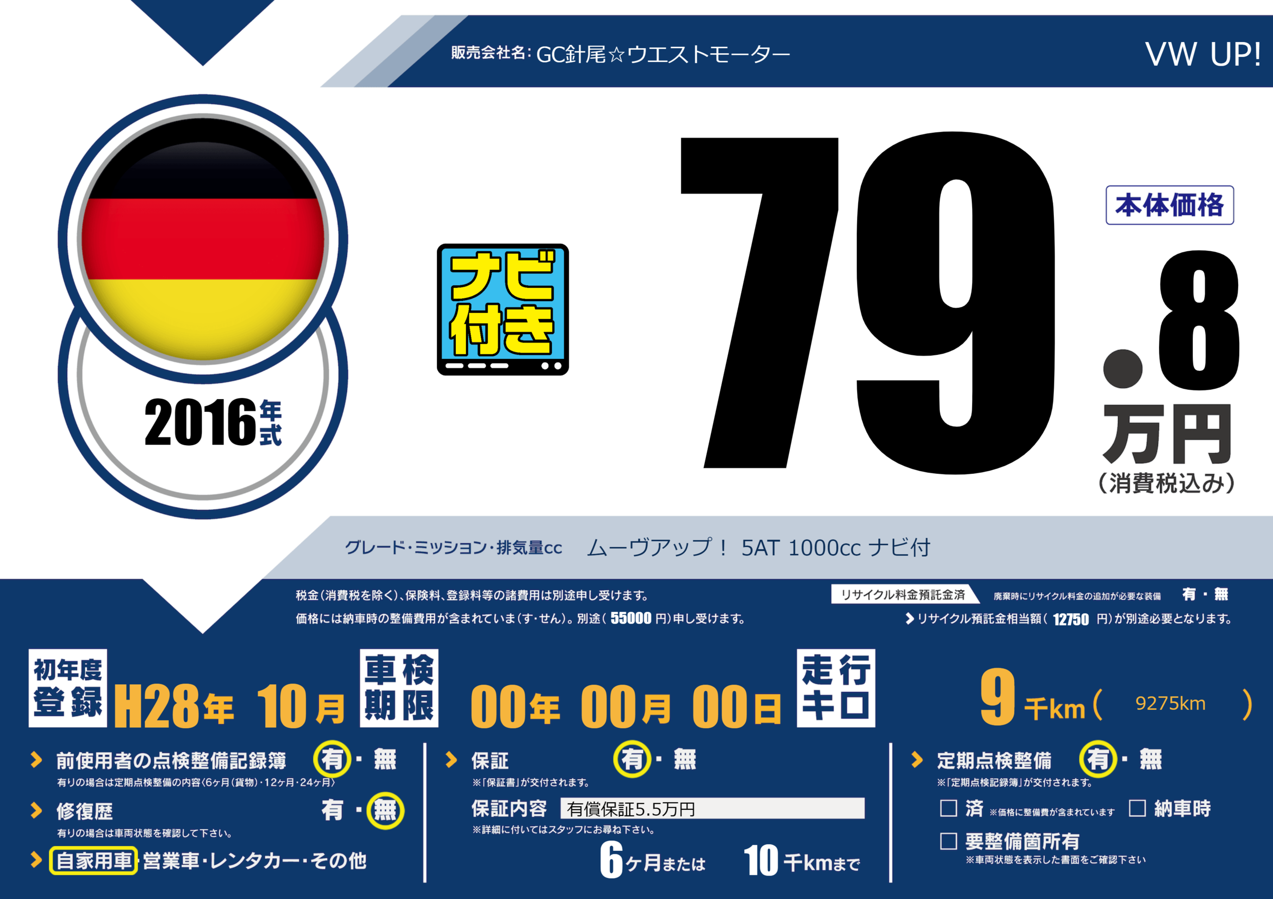 | 車検制限 | 00年 00月 00日 | ||