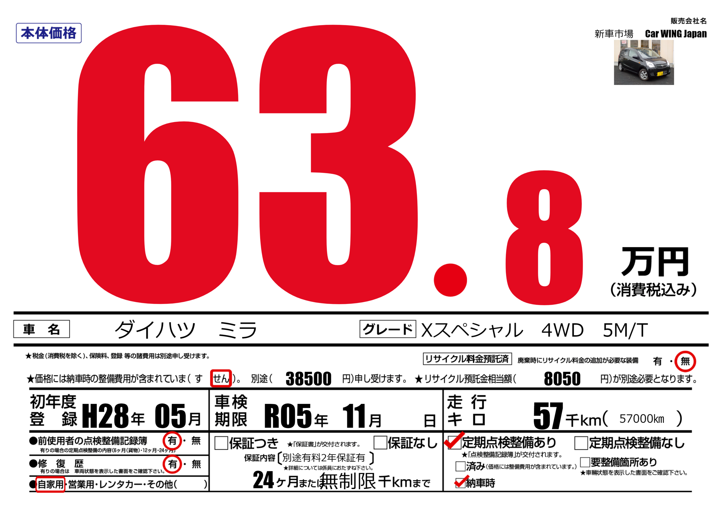| 車検制限 | R05年 11月 - 日 | ||