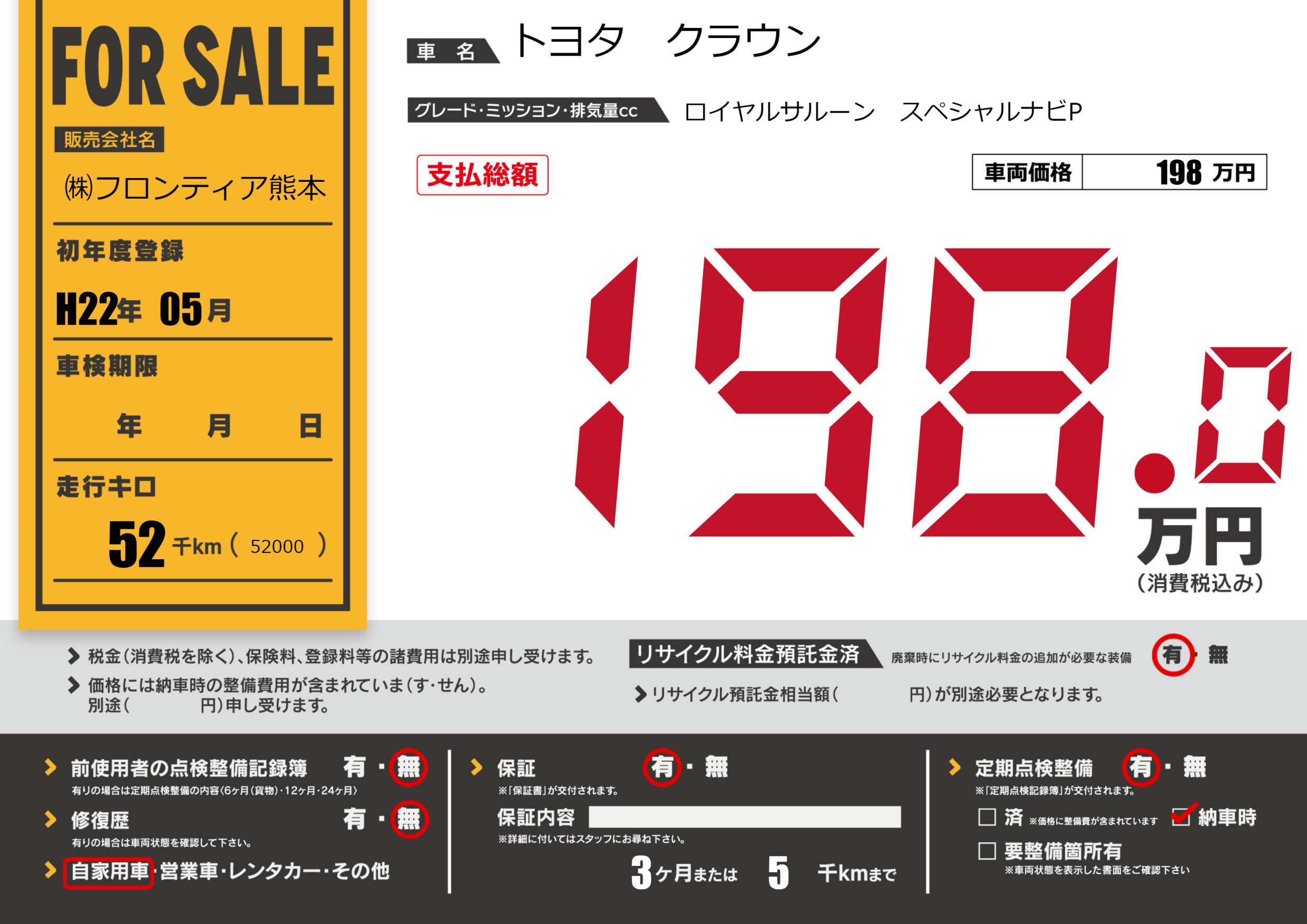 | 車名 | トヨタ クラウン | グレード ミッション 排気量 |