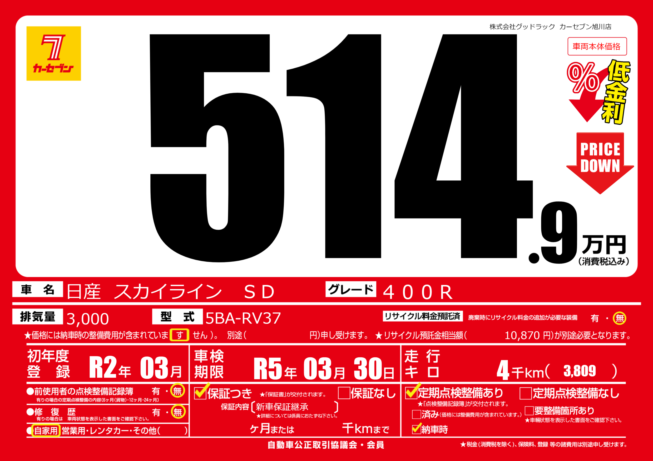 | 車検制限 | R5年 03月 30日 | ||
