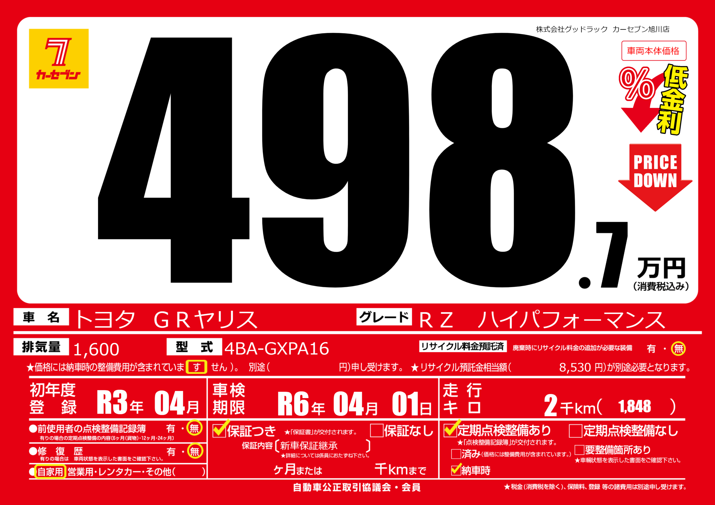| 車検制限 | R6年 04月 01日 | ||
