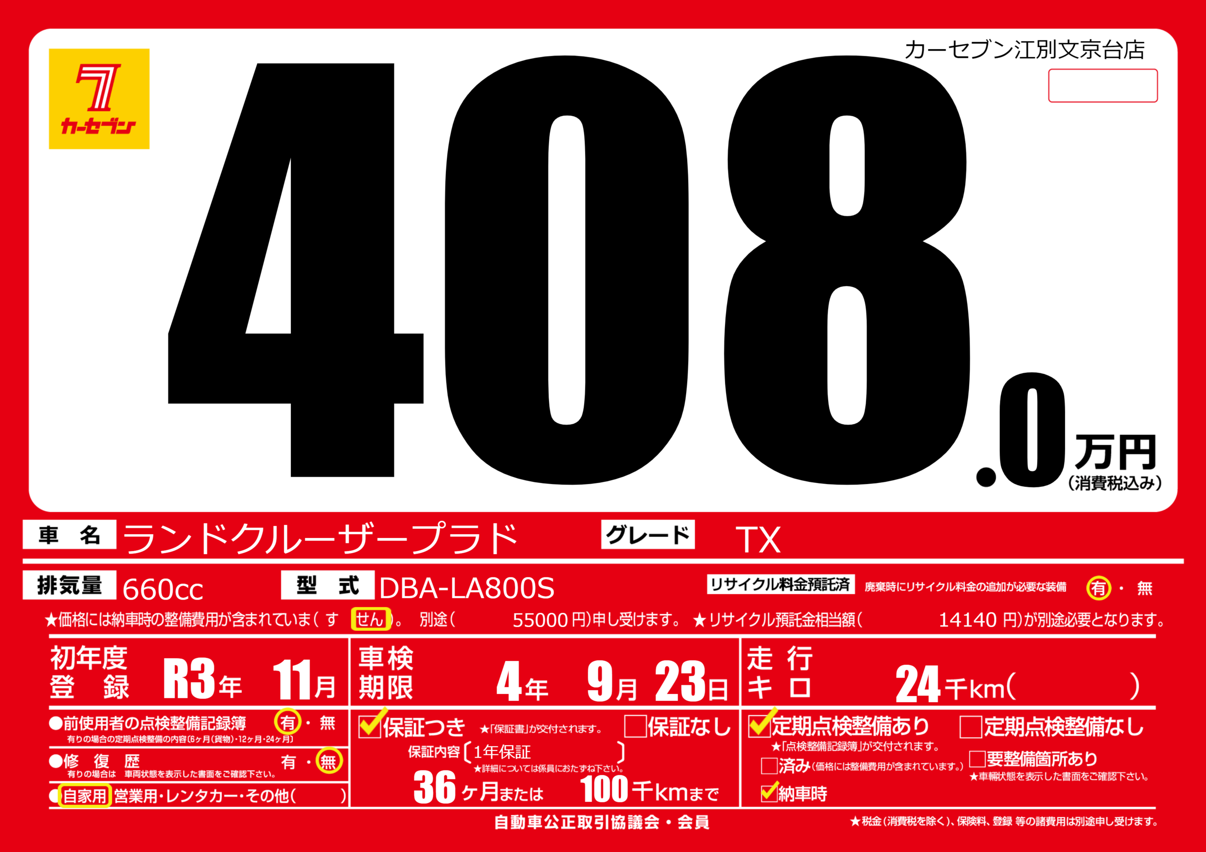 | 車名 | ランドクルーザープラド | グレード ミッション 排気量 |