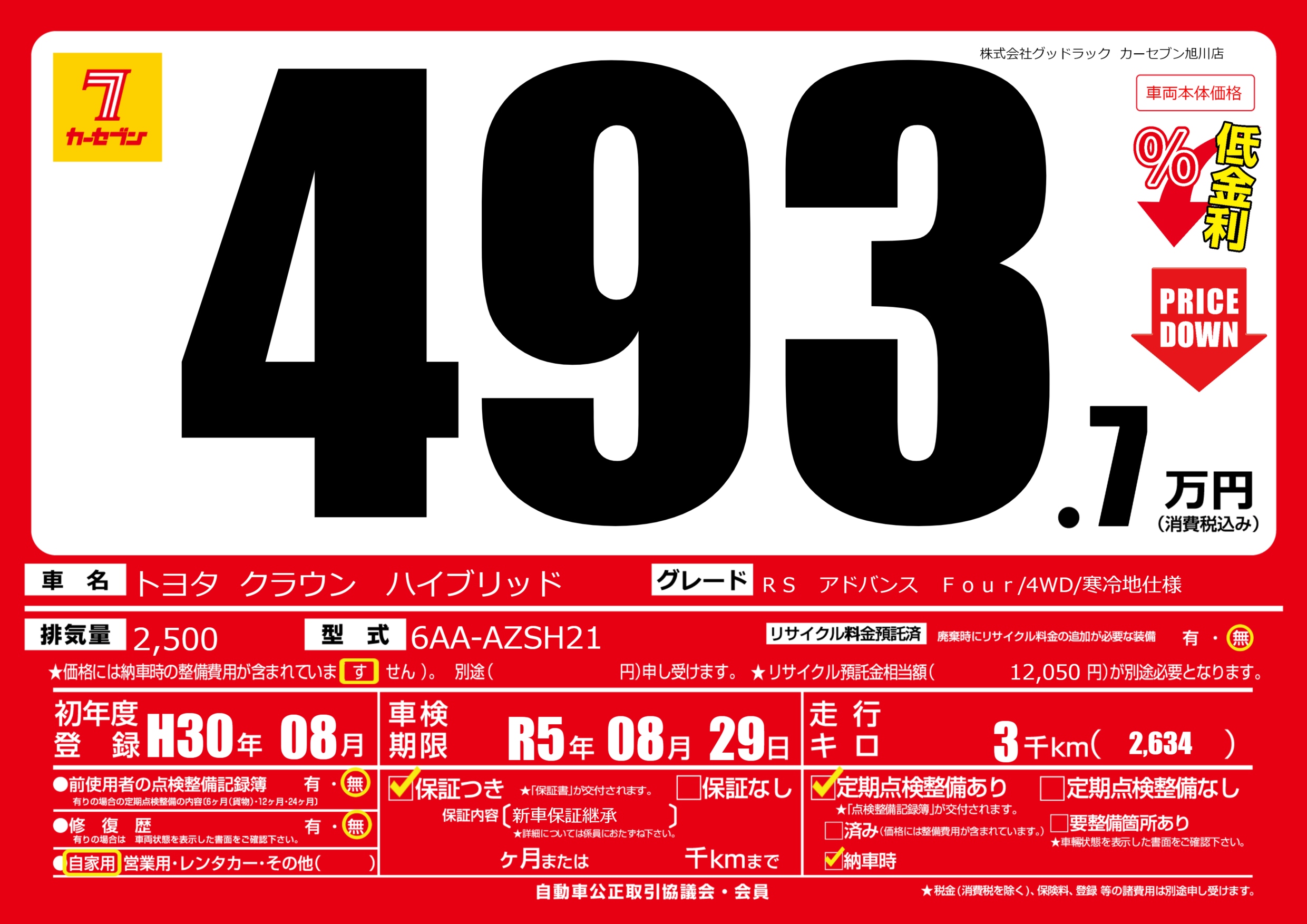 あり | 車検制限 | R5年08月29月 |