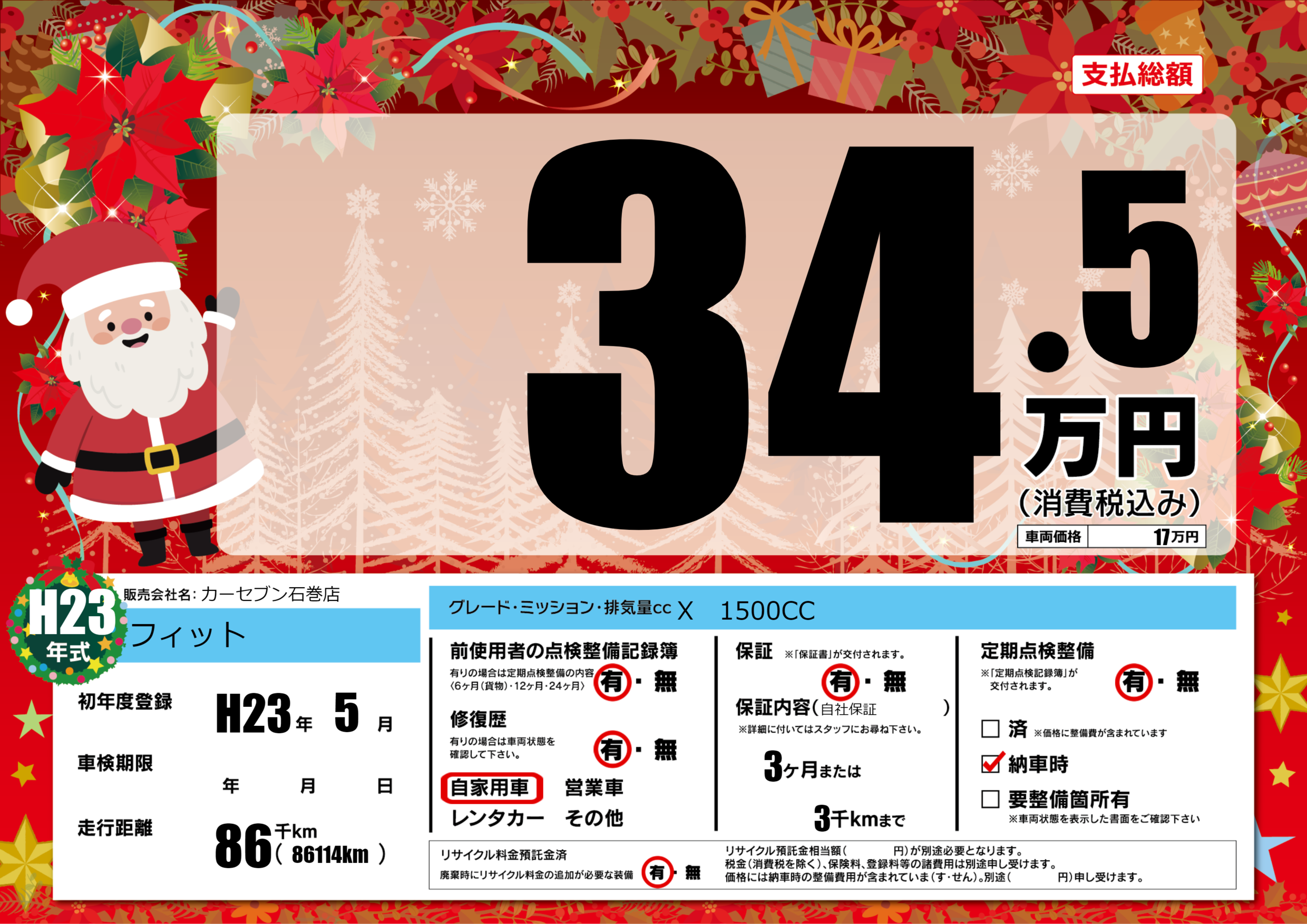 | 走行キロ | 8.6万km | 初年度登録 | H23年5月 |