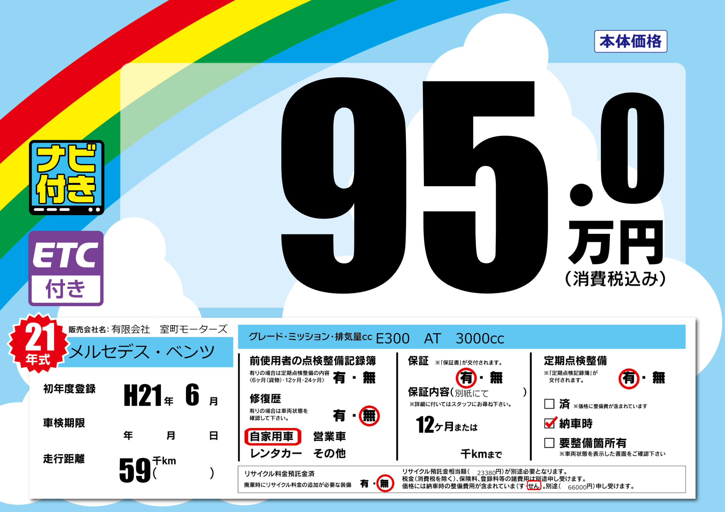 | 車名 | メルセデス・ベンツ | グレード ミッション 排気量 |