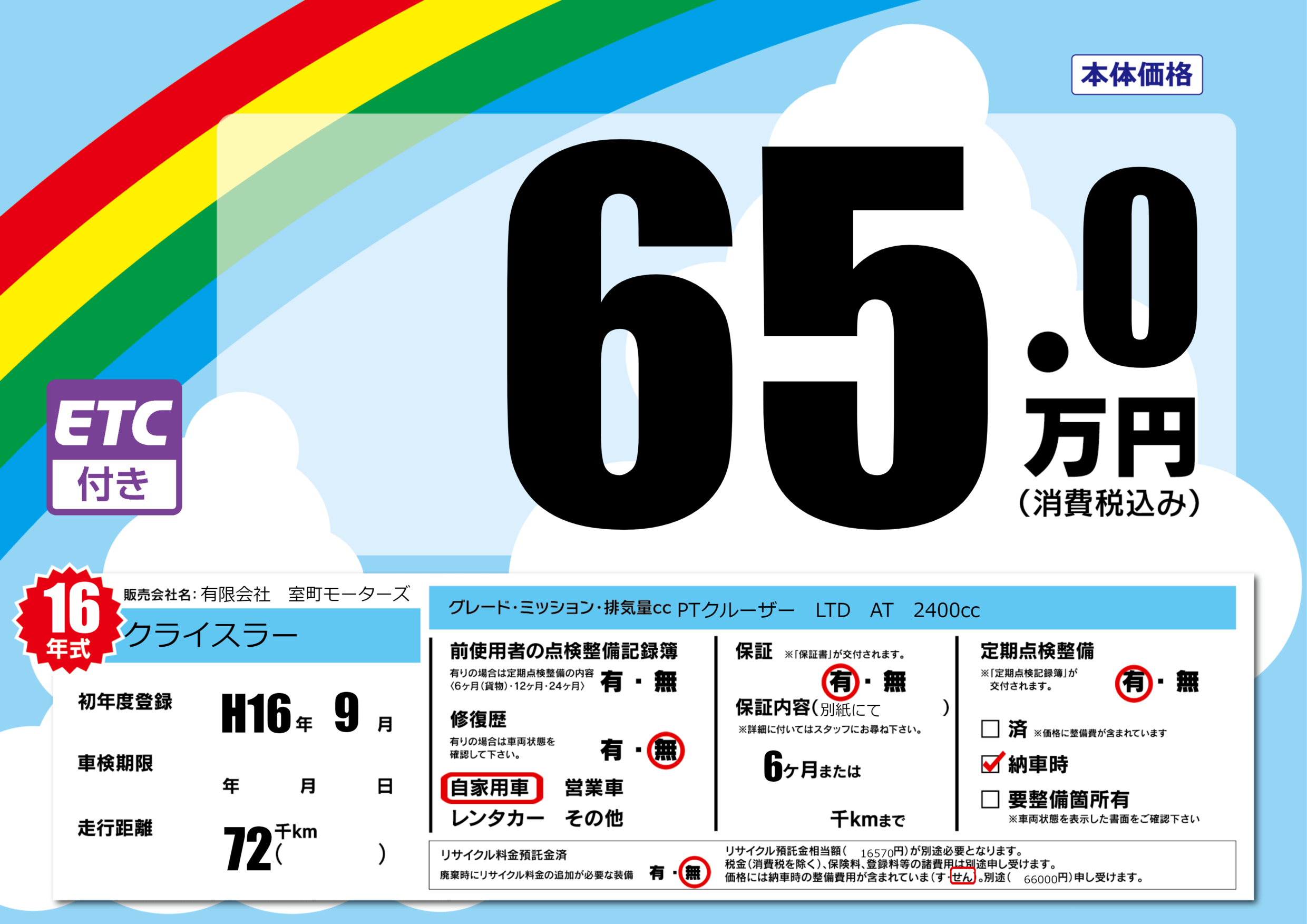 | 走行キロ | 7.2万km | 初年度登録 | H16年9月 |