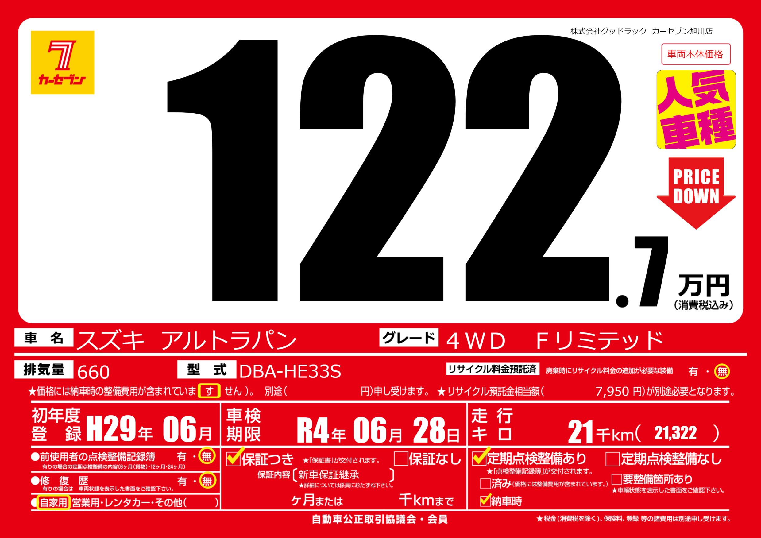 | 車名 | スズキ アルトラパン | グレード ミッション 排気量 |