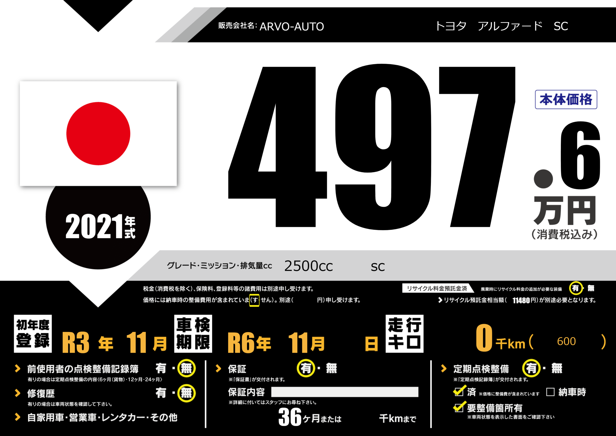 | 走行キロ | - | 初年度登録 | R3年11月 |