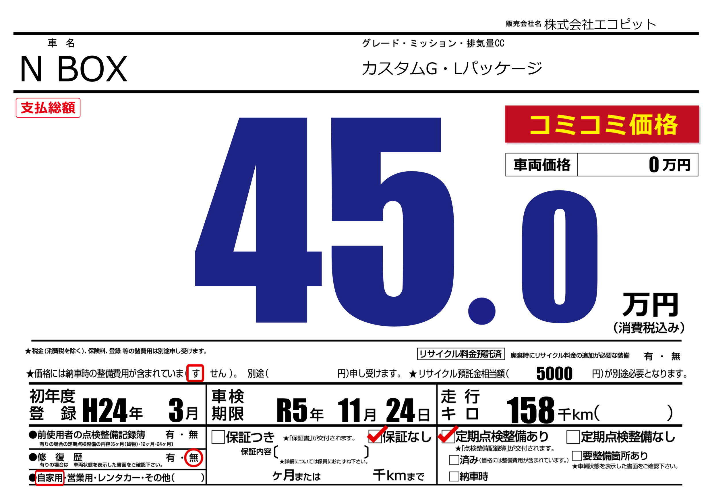 あり | 車検制限 | R5年11月24月 |
