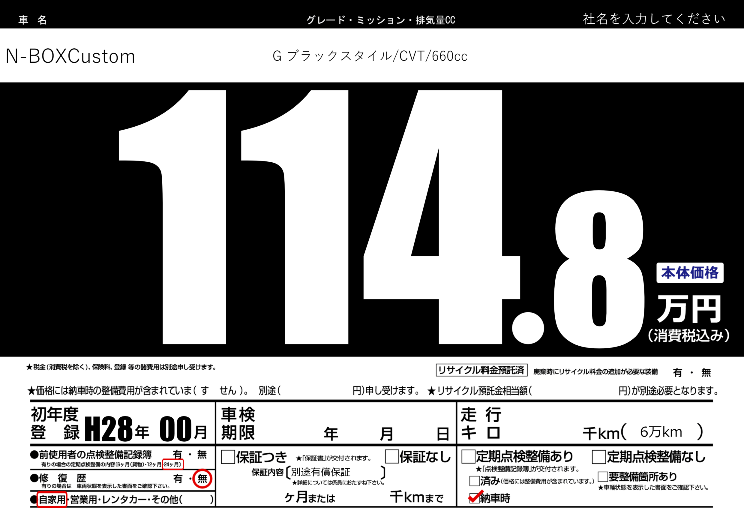 | 走行キロ | - | 初年度登録 | H28年00月 |