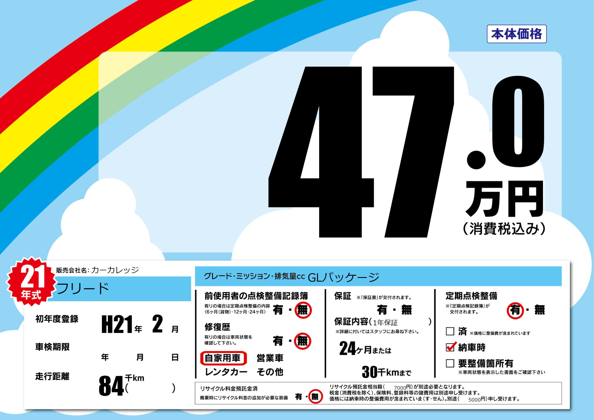 | 走行キロ | 8.4万km | 初年度登録 | H21年2月 |