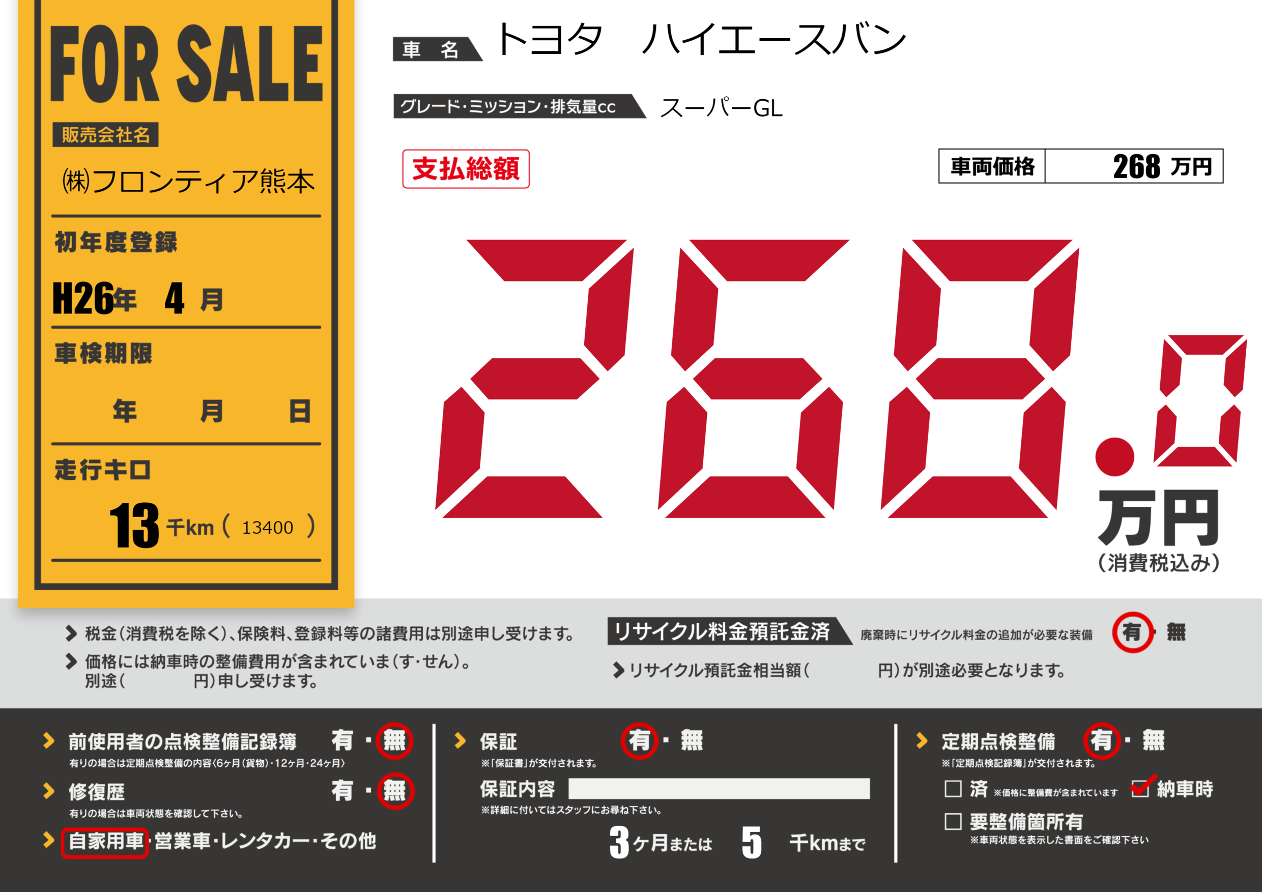 保証付き 保証内容(---) 3ヶ月または(5)千kmまで |