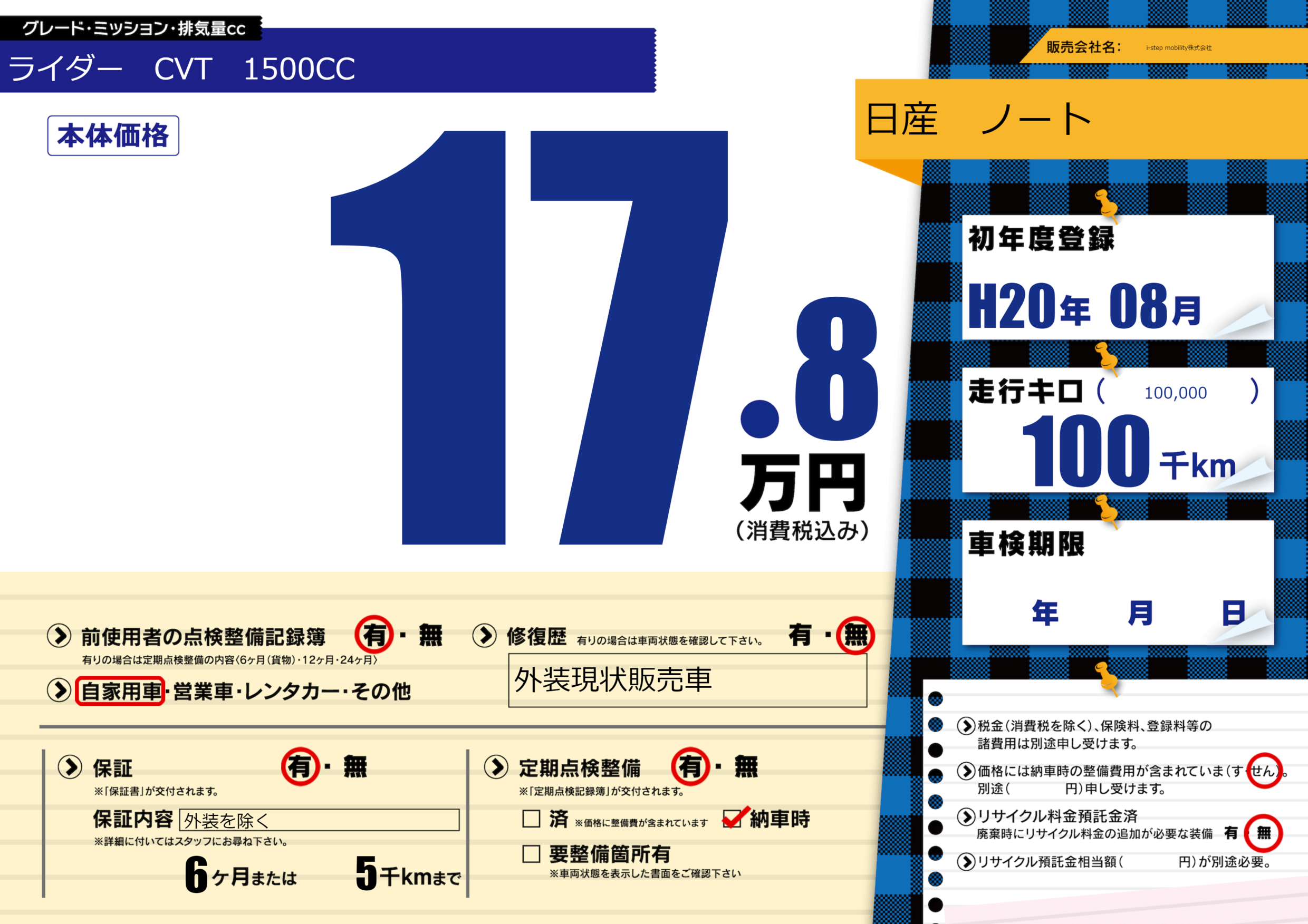 保証付き 保証内容(外装を除く) 6ヶ月または5千km |