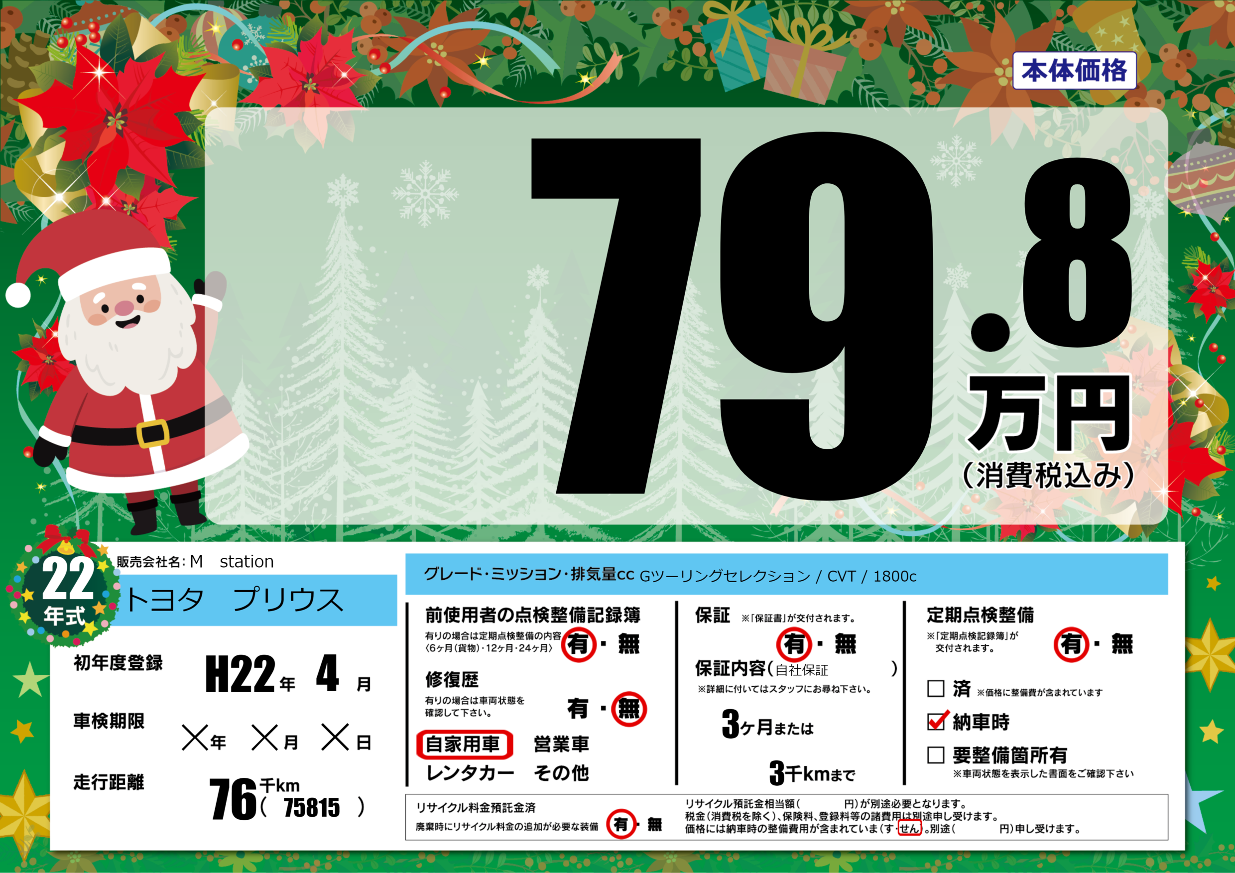 | 定期点検整備 | 定期点検整備あり 納車時あり | ||