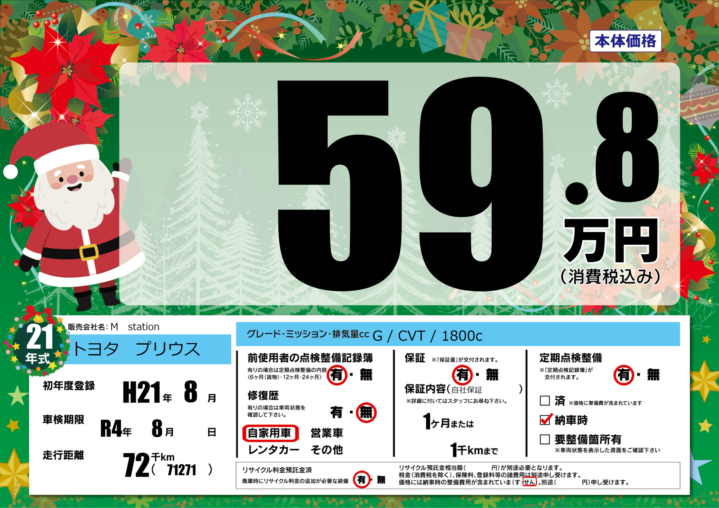 | 車名 | トヨタ プリウス | グレード ミッション 排気量 |