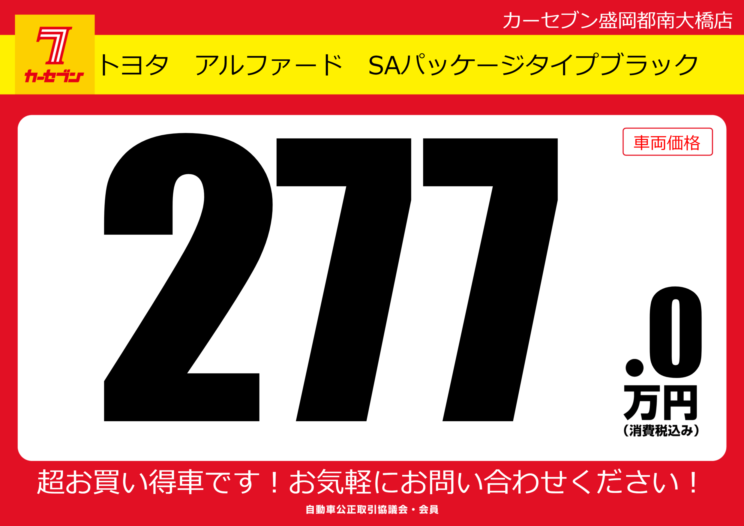 | 車名 | トヨタ アルファード SAパッケージタイプブラック | グレード ミッション 排気量 |