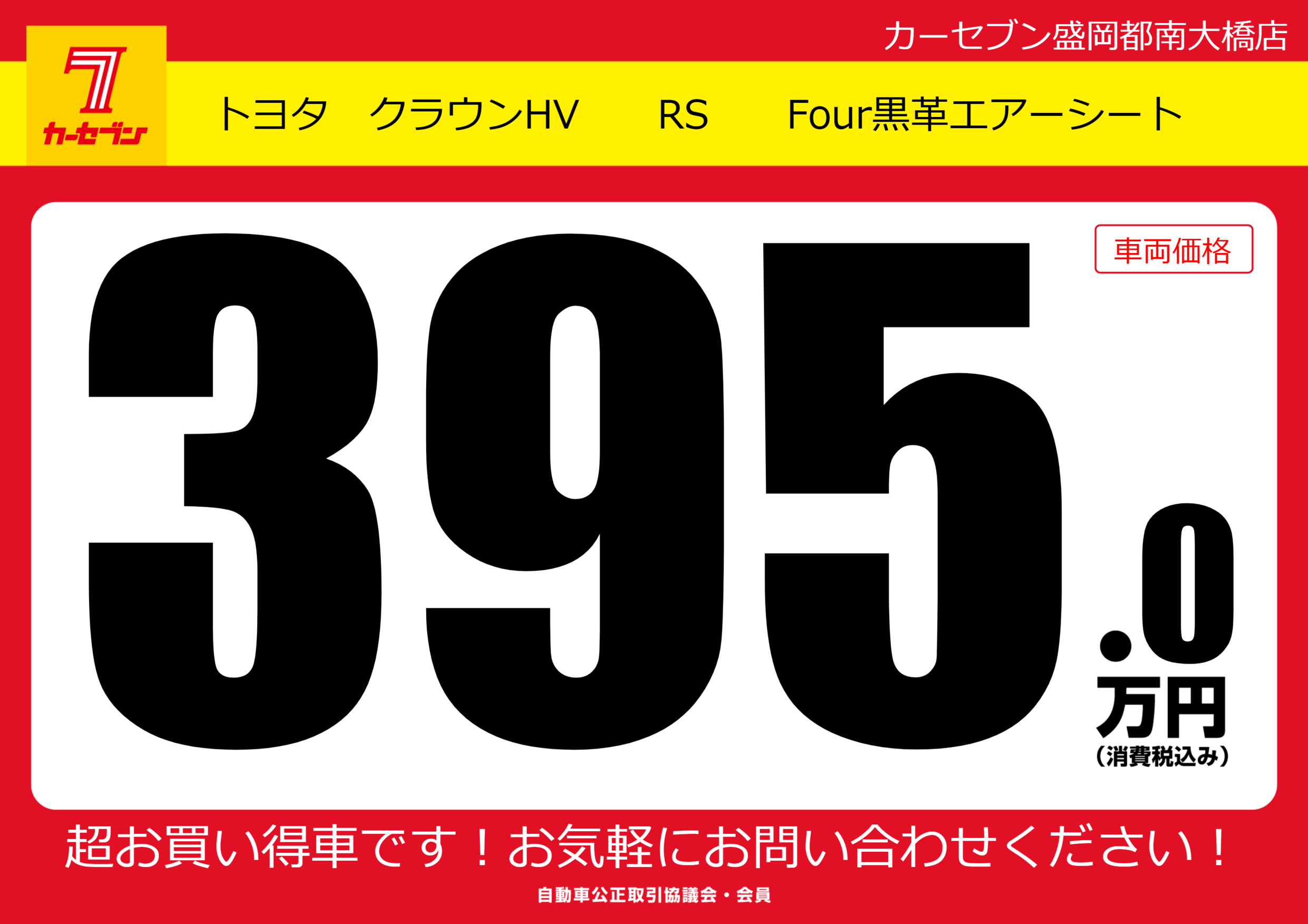 | 車名 | トヨタ クラウンHV RS Four黒革エアーシート | グレード ミッション 排気量 |