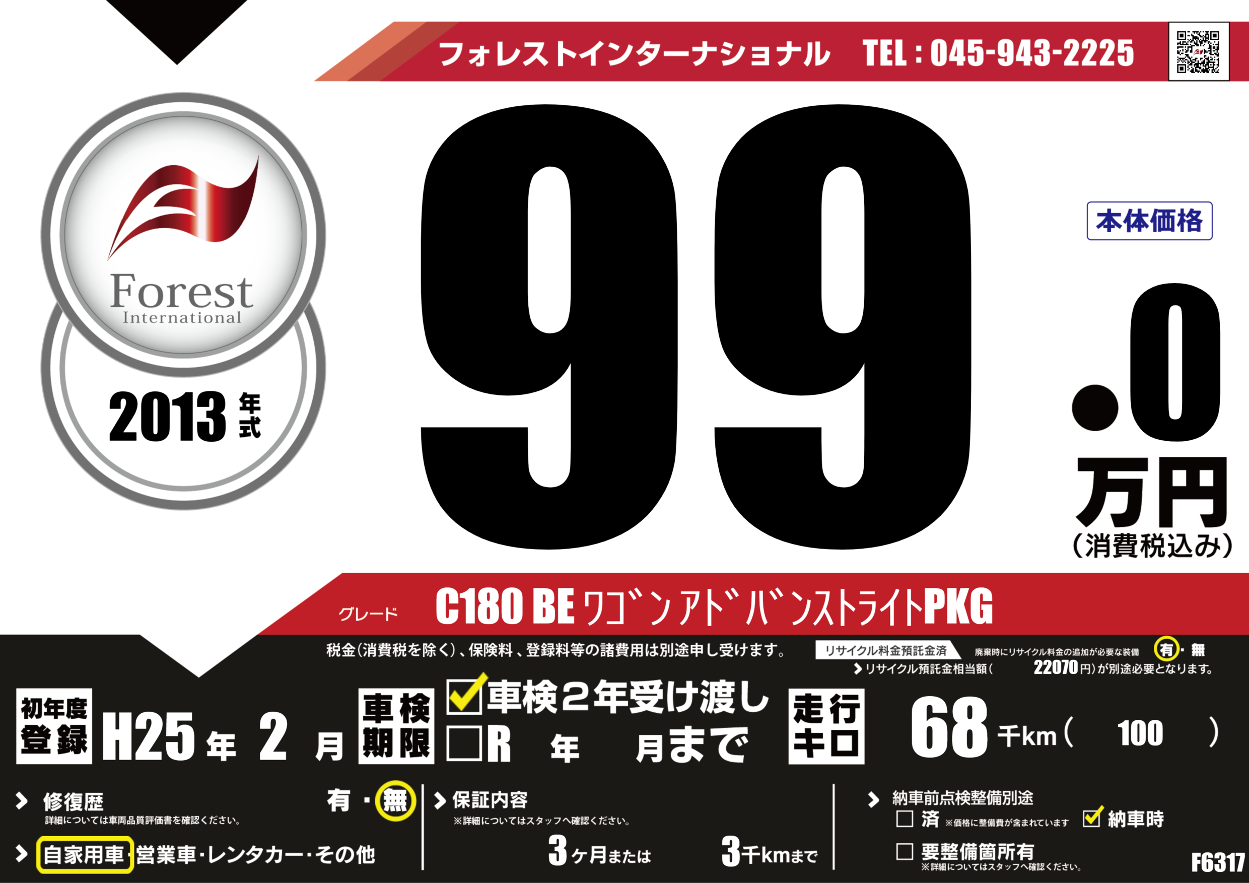 | 走行キロ | 6.8万km | 初年度登録 | H25年2月 |
