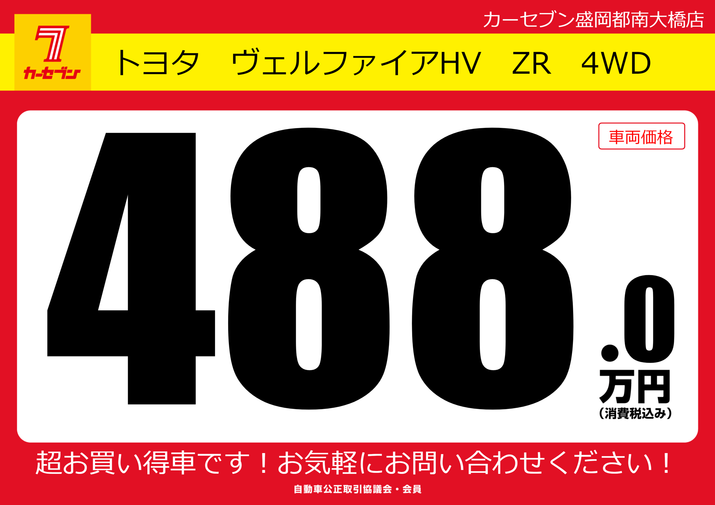 | 車名 | トヨタ ヴェルファイアHV ZR 4WD | グレード ミッション 排気量 |