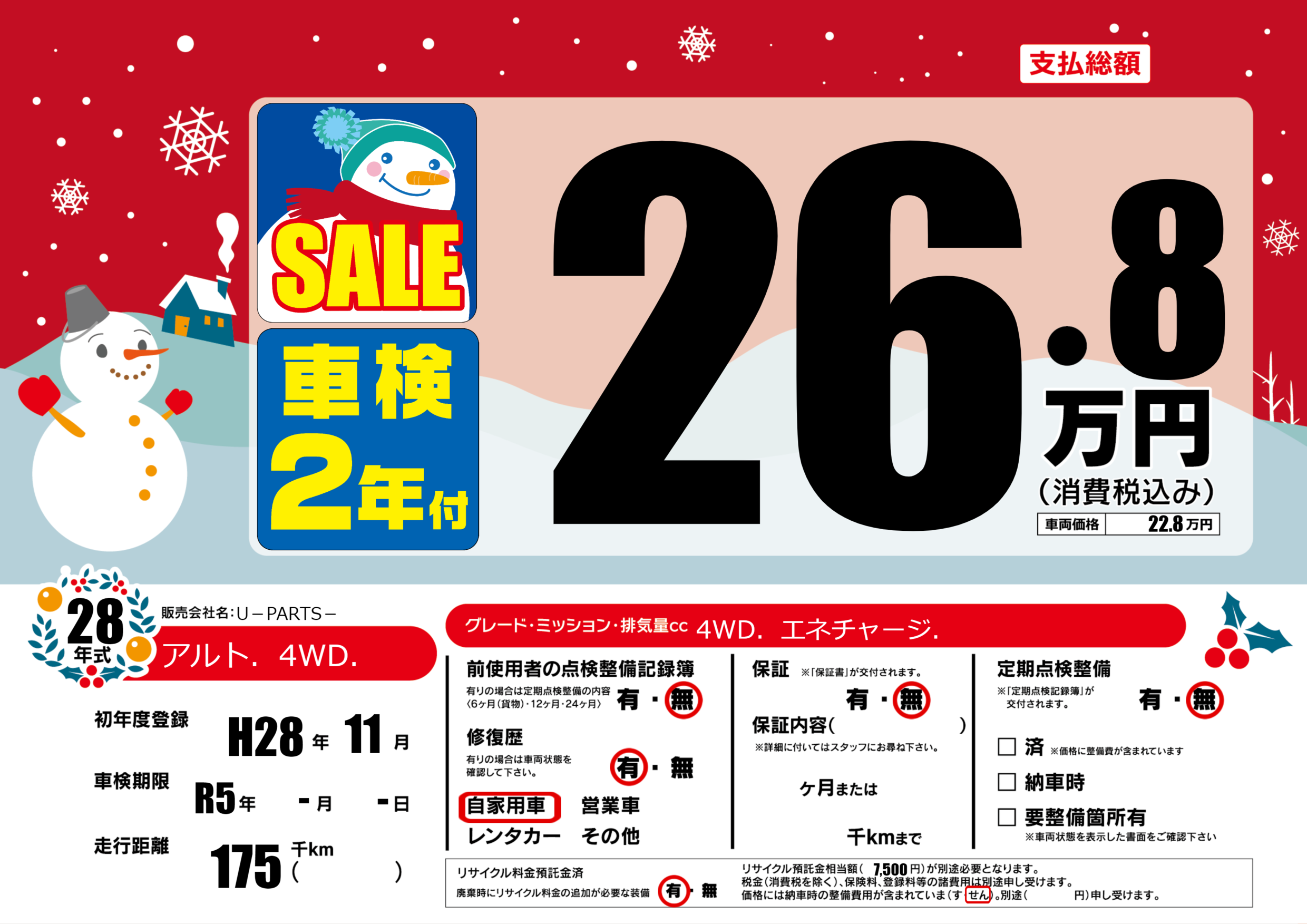 | 車名 | アルト.4WD. | グレード ミッション 排気量 |