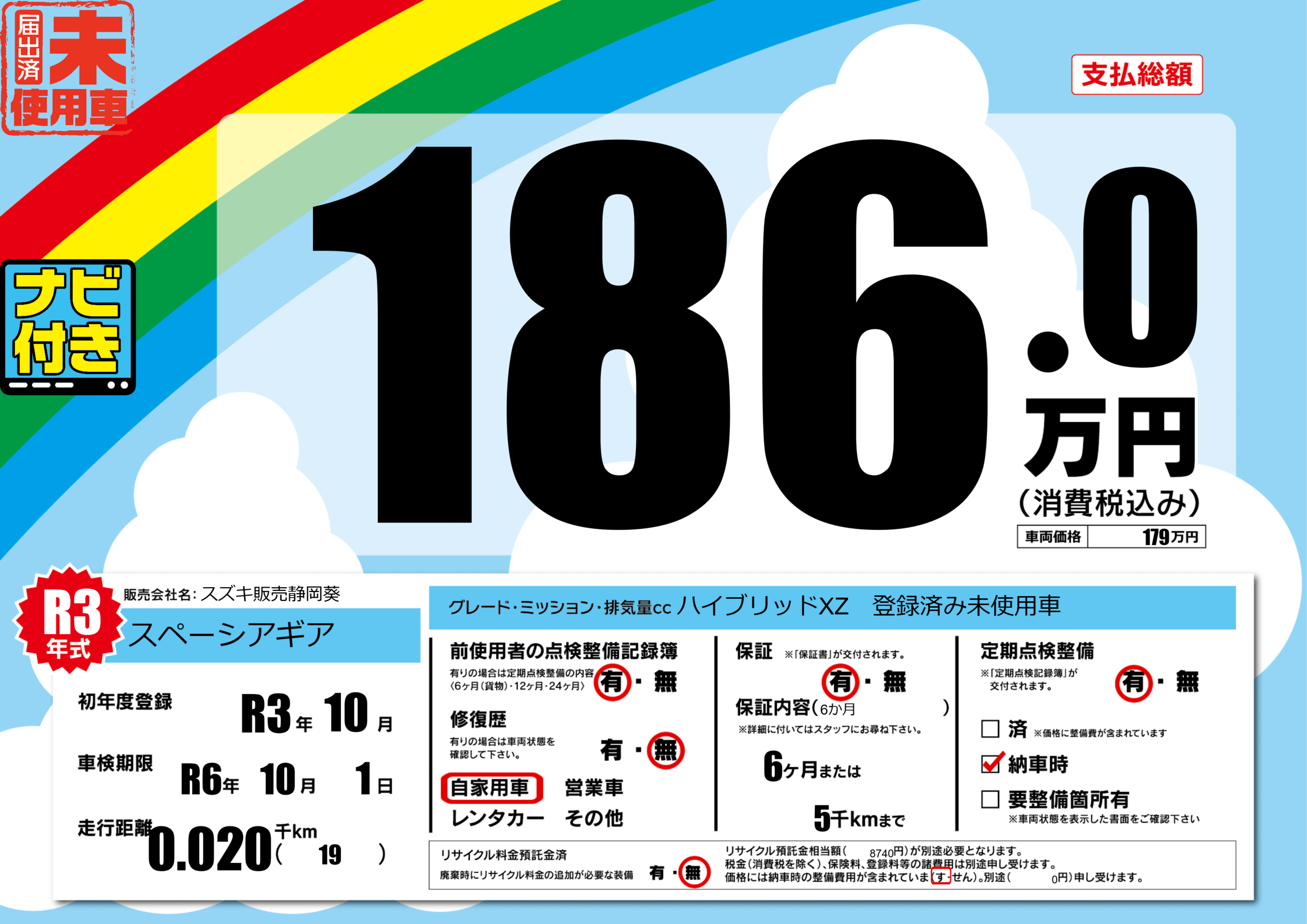 | 走行キロ | - | 初年度登録 | R3年10月 |